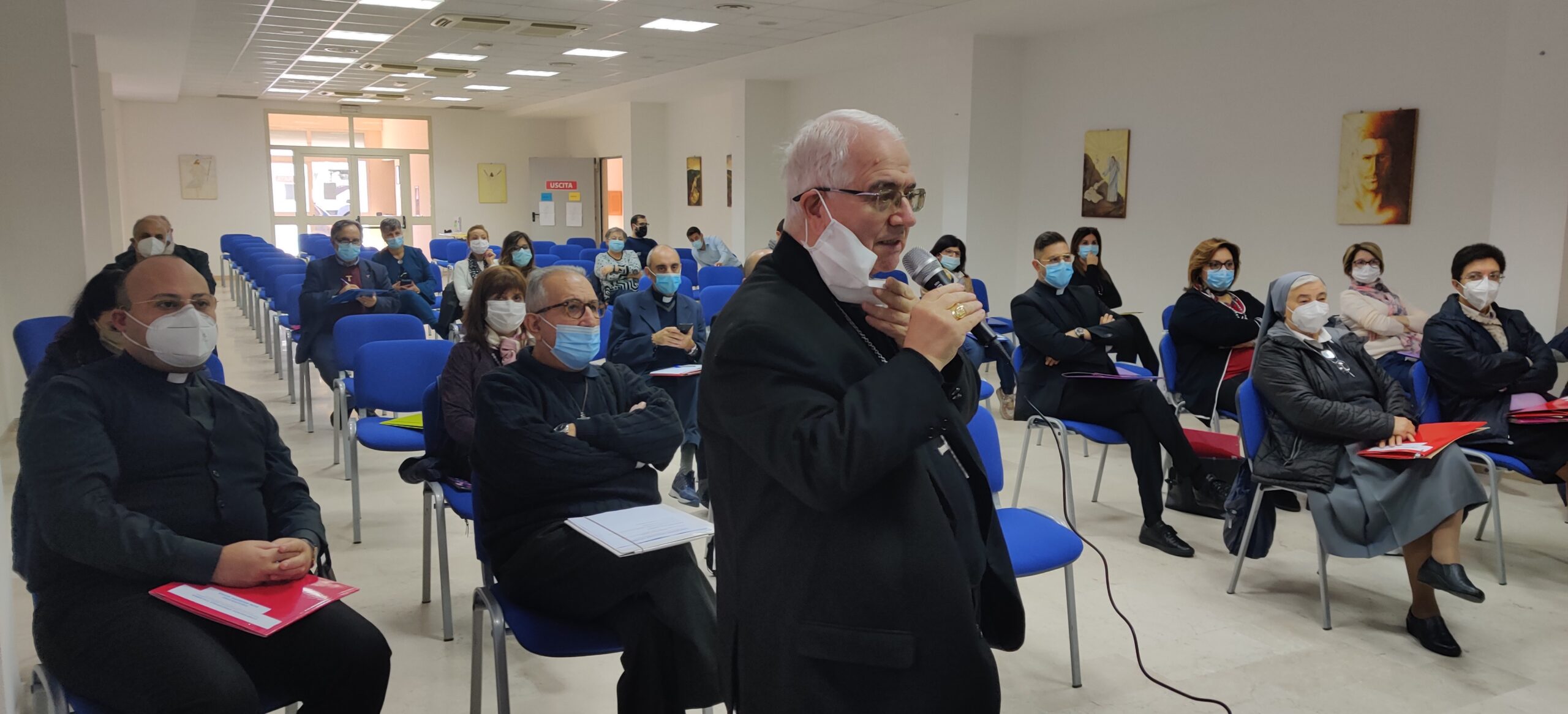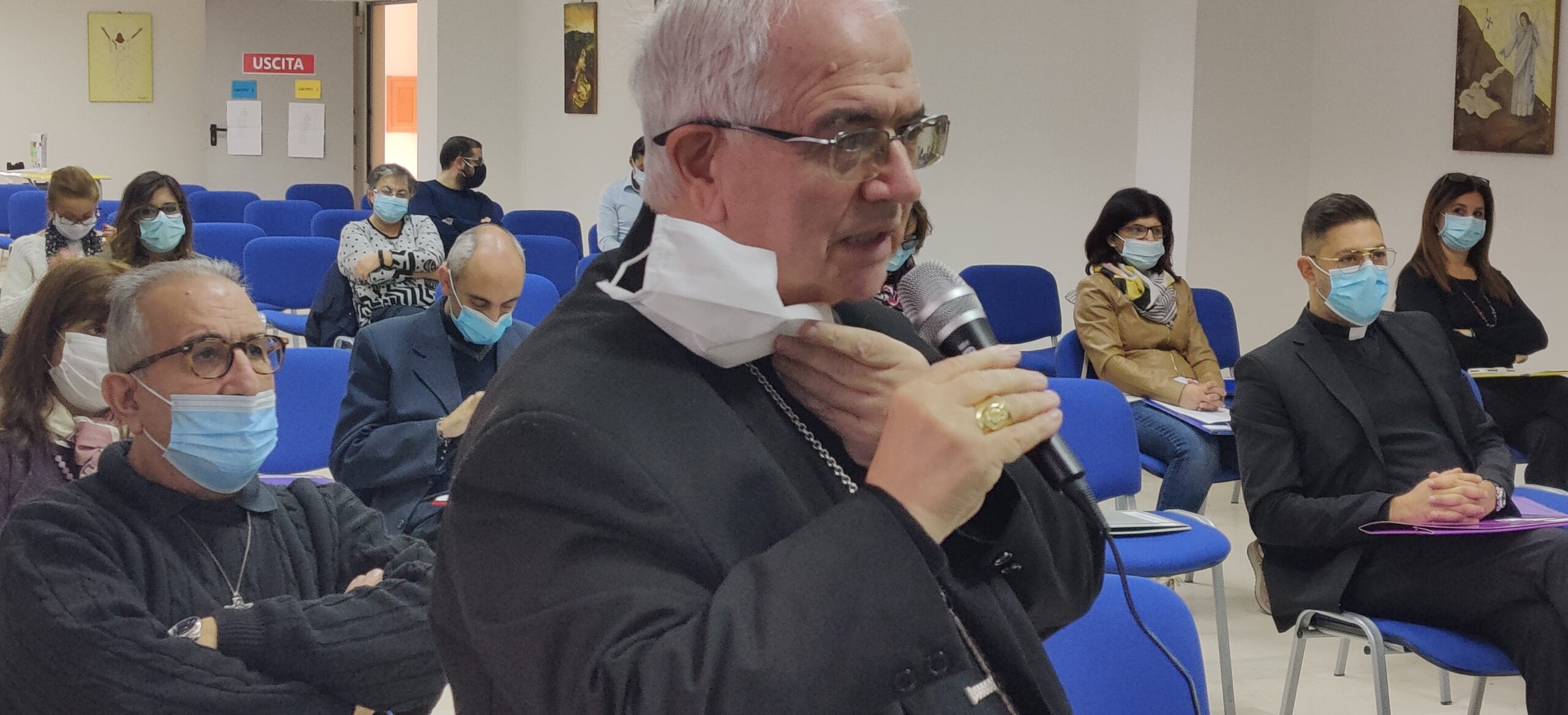 Dopo il saluto di Mons. Francesco Milito, presente con la Diocesi di Oppido, segno di comunione e cura del Pastore per il cammino ecclesiale, particolarmente sentito è stato l’intervento di Mons. Giuseppe Satriano che in questo cammino ha sempre evidenziando la necessità di fare squadra per coinvolgere  le dodici diocesi di Calabria verso un evento di fede che, con uno stile sinodale,  dovrà dare un prezioso contributo per la crescita delle comunità ecclesiali, facendo emergere anche luci ed ombre che spesso ostacolano l’azione pastorale. Inoltre non nascondendo la commozione di dover lasciare la Calabria per tornare nella sua Puglia, ha anche evidenziato quanto per lui non sia semplicemente un ritorno a Casa, perché in questi ultimi anni “la Calabria è stata Casa” – ha detto.