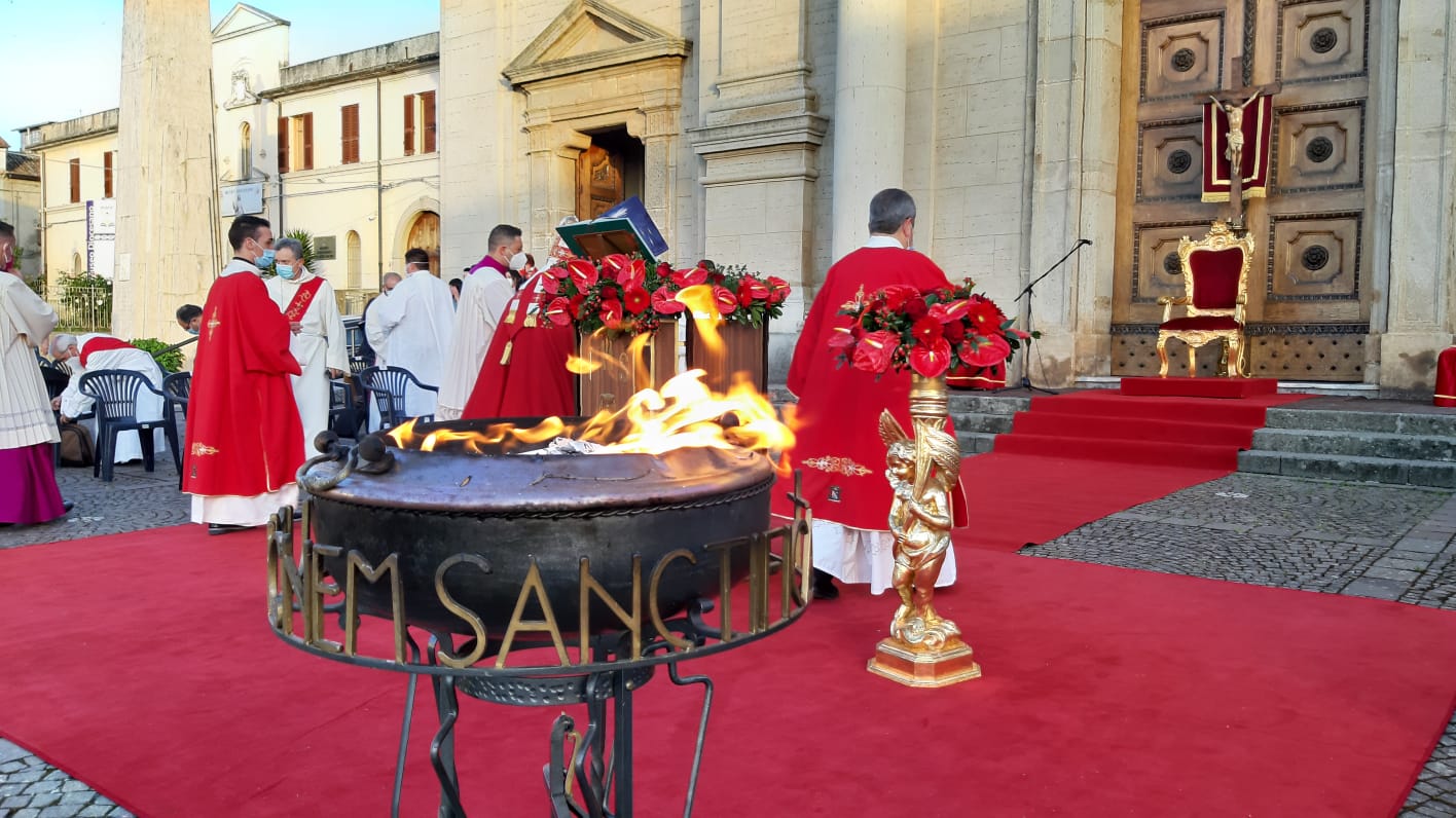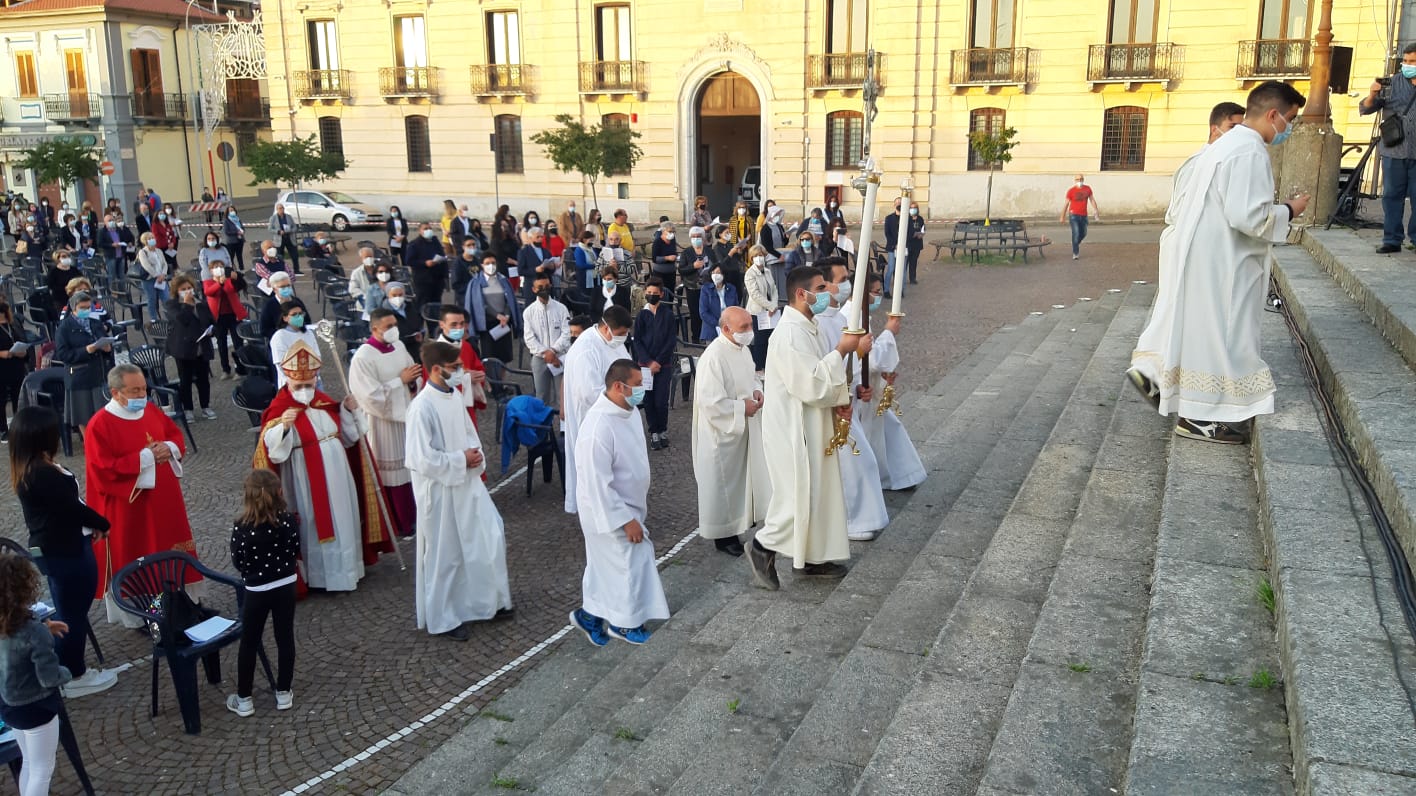 La Veglia, particolarmente coinvolgente, si è svolta all’aperto nella piazza antistante la Cattedrale di Oppido Mamertina ed è stata presieduta dal nostro Vescovo, S.E. Mons. Francesco Milito alla presenza di parte del clero diocesano, sacerdoti e diaconi, e di tanti fedeli convenuti dalle parrocchie della Diocesi.
