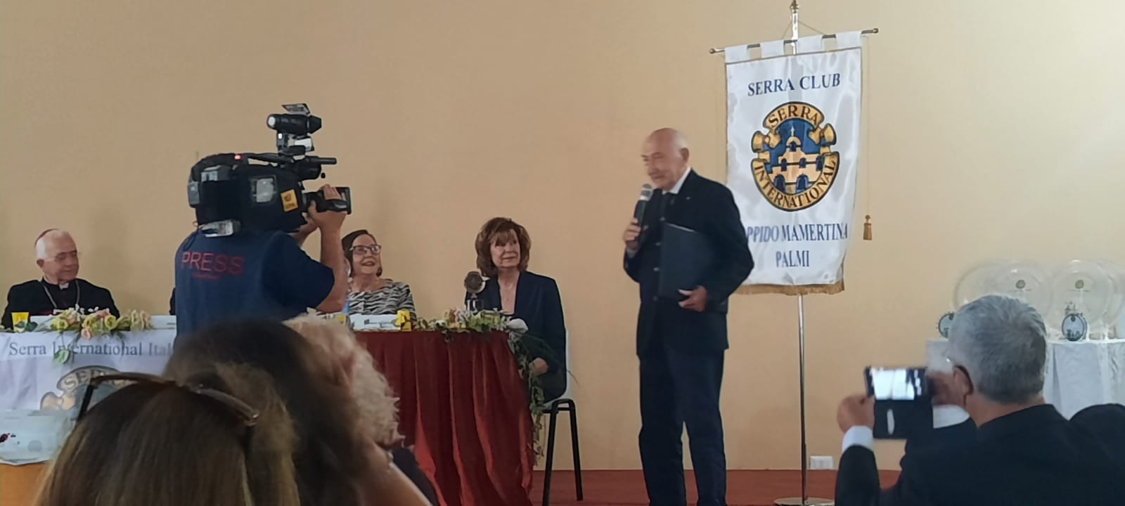 A seguire, non senza emozione, Michele Montalto, Governatore Distretto 77 Sicilia Calabria, -che ha donato al nuovo club il gonfalone, una borsa di studio per un seminarista e la statuetta di don Junipero Serra – ha detto: ”E’ un onore e un privilegio iniziare il mio servizio con l’apertura di un nuovo Club che rappresenta per il distretto la nascita di un figlio, che io aiuterò in ogni momento della sua vita”.