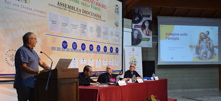 Don Domenico Loiacono, Segretario generale del Sinodo Diocesano ha introdotto i lavori dedicati nella 1ª Sezione alla recezione e riconsegna del questionario proposto nei mesi estivi da parte del Gruppo diocesano di lavoro costituito proprio per l’animazione dell’Anno “Amoris Laetitia” della famiglia, ringraziando quanti hanno collaborato alle risposte, parroci, diaconi permanenti, religiosi, sinodali, membri del Consultorio familiare e membri della Pastorale familiare, i 30 intervistatori e il Gruppo di animazione.