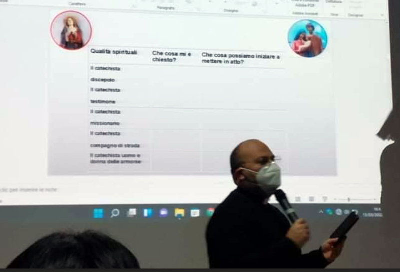 Il ritiro/approfondimento ha prima visto la relazione di don Sofrà che ha toccato punti fondamentali quali: le caratteristiche del catechista come annunciatore; il catechista come discepolo, annunciatore e missionario; la competenza relazionale, capacità di annuncio e narrazione la capacità di educare sapendo leggere i segni di Dio, la capacità d’introdurre nella vita della comunità.