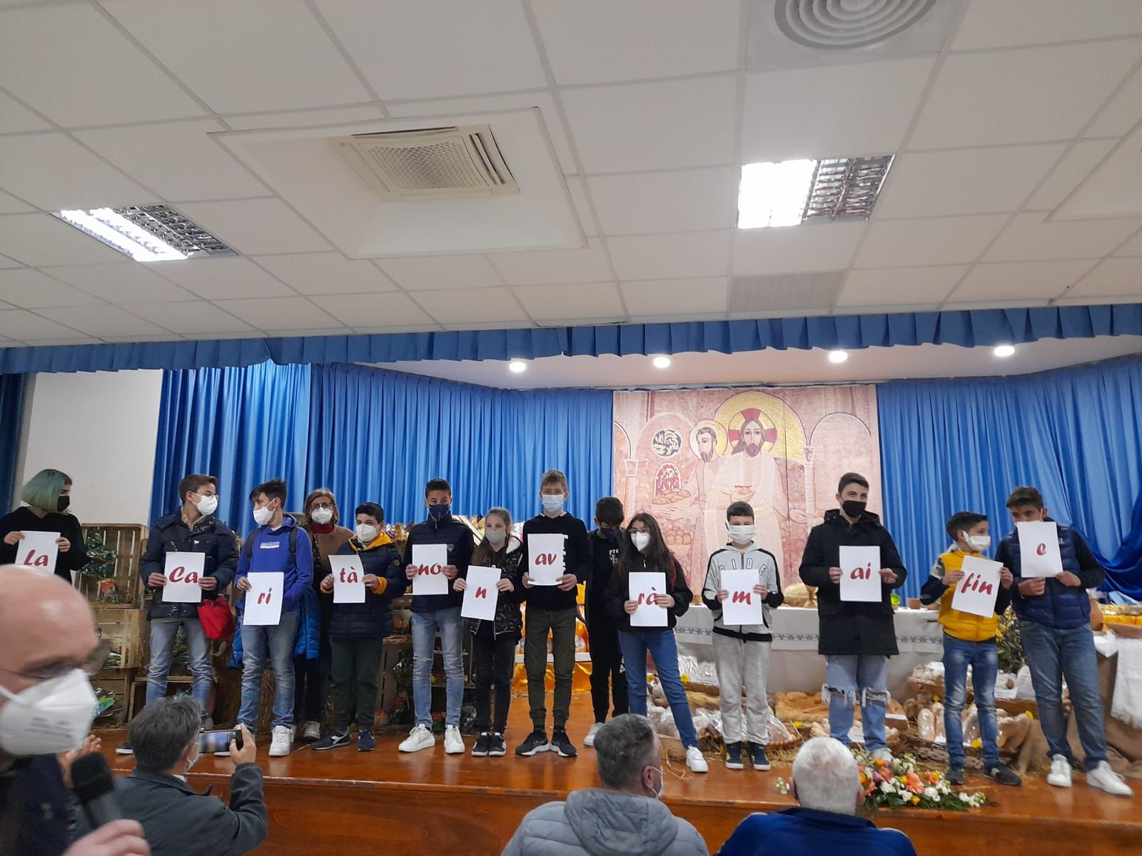 La Carità è andata dunque in scena nei suoi segni e nelle sue qualità: benigna come l’incontro tra il Vescovo e la comunità parrocchiale, paziente come gli operatori Caritas nell’organizzare qualcosa di bello per le famiglie, umile come le maestre che quasi intimidite preferiscono non vantarsi del loro servizio, o come chi si adopera gratuitamente per donare alle ragazze ucraine momenti di relax con acconciature alla moda. Una Carità che si compiace di verità e trasparenza nelle consegne alle famiglie, e che se continuerà ad essere vissuta da questa Parrocchia con gioia e amore, “non avrà mai fine”.
