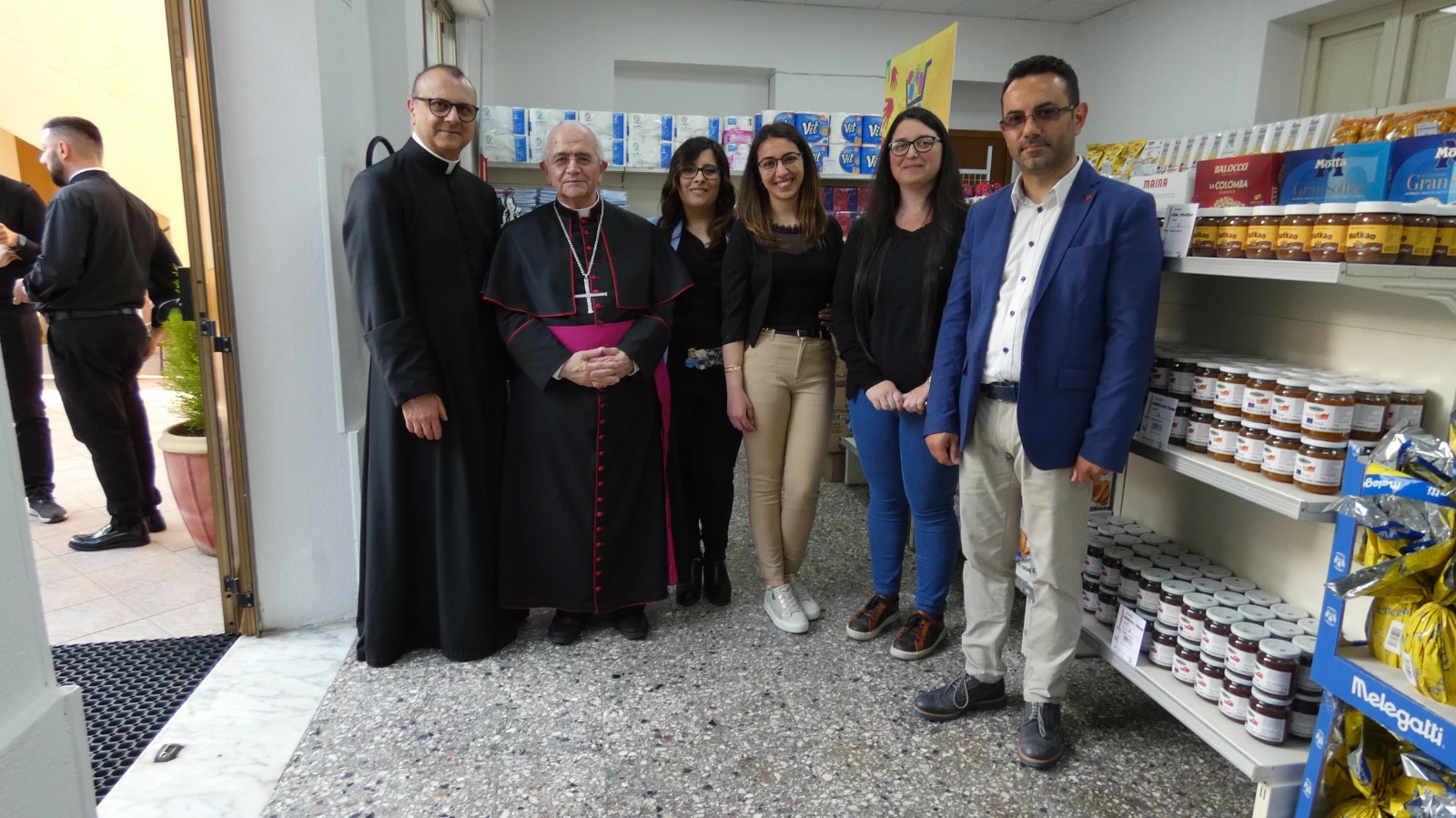 Seguono la benedizione, da parte del Vescovo, della sede dell’Emporio ed il taglio del nastro, che segna l’inizio di un nuovo obiettivo comune da raggiungere, quello di “perseguire il bene facendolo bene”, come spesso lo stesso Vescovo ha espresso; un luogo quello dell’Emporio dove “chi può da’ e chi non può riceve”, uno scambio reciproco di empatia che rende tutti testimoni dell’amore filiale di Dio, una meta da raggiungere ogni giorno, possibile grazie all’aiuto dei volontari, anima e cuore del progetto e della comunità tutta, che con gioia ha accolto questo innovativo progetto di carità .