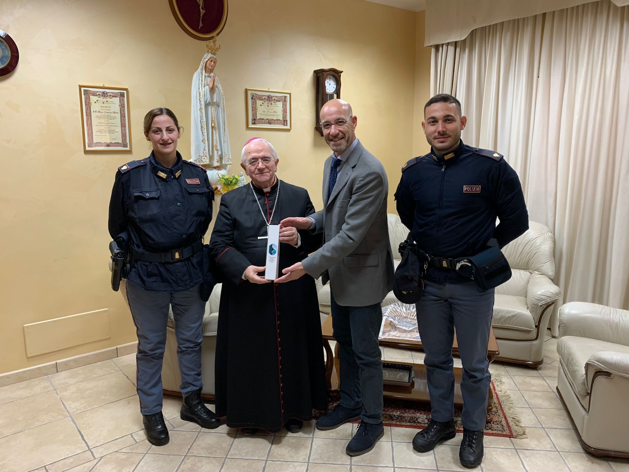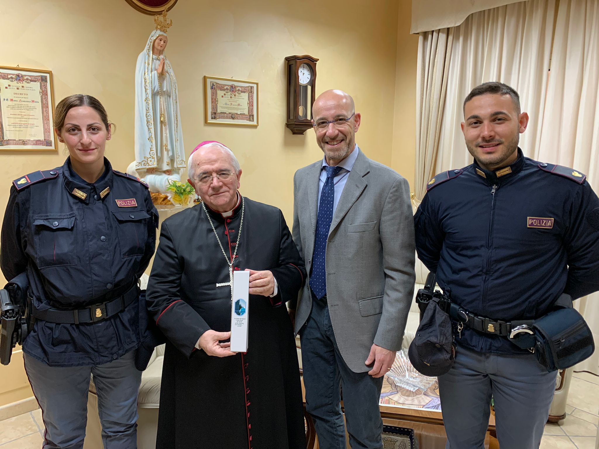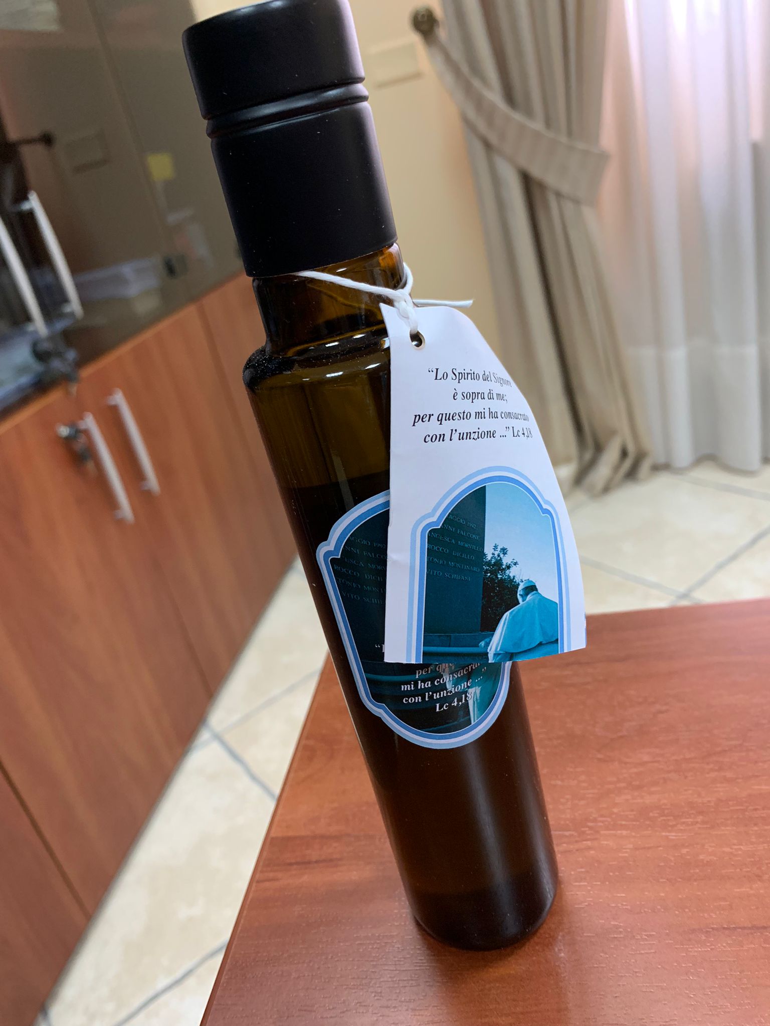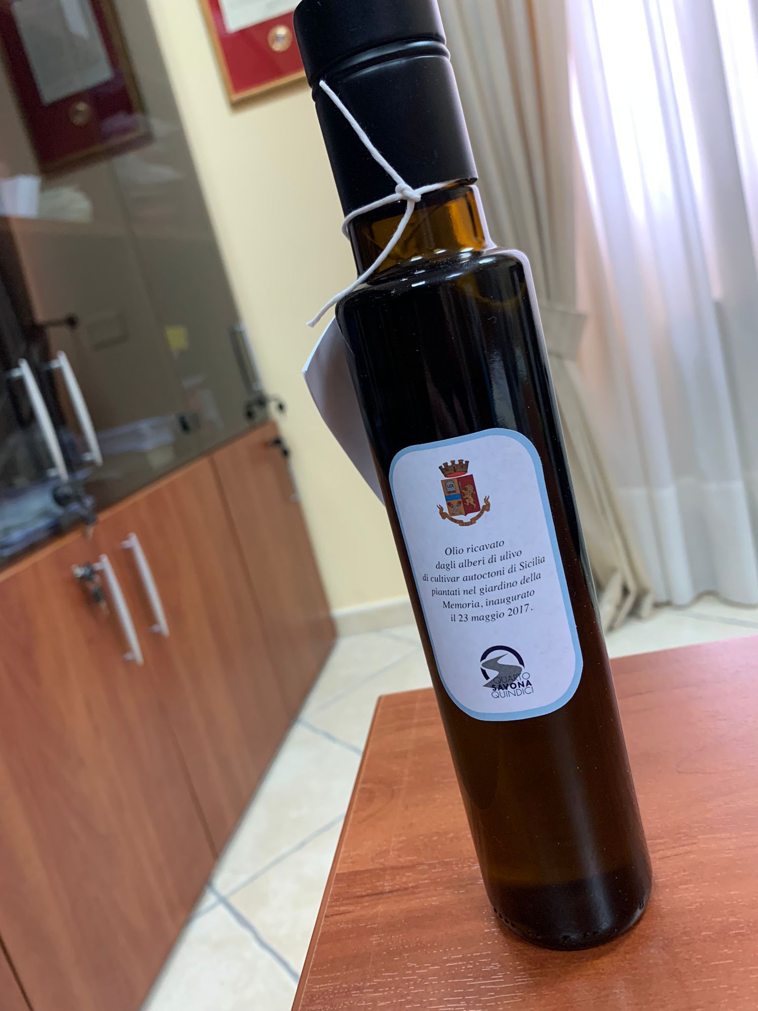 L’olio di Capaci (prodotto dall’associazione “Quarto Savona 15”, la Onlus fondata da Tina Montinaro vedova di Antonio) è stato consegnato oggi al vescovo dal commissario di Palmi accompagnato da personale della Polizia di Stato.