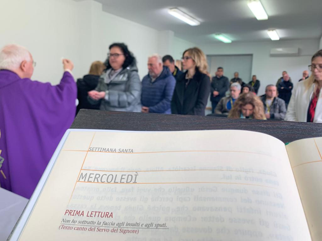 Mercoledì santo, 5 aprile, il nostro Vescovo Mons. Francesco Milito ha concelebrato la santa Messa nella Sala Formazione dei dipendenti del Medcenter Container Terminal al porto di Gioia Tauro accolto con manifestazione di gioioso affetto da tutti i presenti.