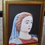 Don Tonino Saraco durante l’omelia parla di “conversione, dell’opportunità di cogliere questi giorni al fianco della Madonna come una grazia, un dono della Pasqua che invita a vivere la vita “non ancorati al dolore della croce che impedisce di gioire della luce della Resurrezione ma protesi verso il trionfo della vita”. Momenti densi di emozione anche sulle suggestive parole della procuratrice della Carovana di San Pietro di Caridà Prof.ssa Francesca Moricca che con grande devozione ha organizzato insieme al parroco l’evento e ha invitato i fedeli a viverlo con fervente amore verso la Madonna “il cui occhio vigile ed il conforto non mancano mai su quanti perseverano nel fare affidamento su di Lei”. “Siamo strumenti nelle sue mani”, continua la Prof.ssa Moricca che alla fine della celebrazione dona un dipinto del “Volto della Madonna” realizzato dall’architetto Carmelo Raco, a Don Tonino Saraco. “Ti faccio dono di un ritratto della Madonna di Polsi ma anche del mio amore nei confronti della Madonna”, un ritratto dallo sguardo dolce e narrante che, come espresso dall’artista Carmelo Raco, “ha significato artisticamente non solo riprendere l’immagine visiva figurativa della Madonna, ma cercare di captare e distribuire con sentimento proprio quel lato umano interiore che la caratterizza, animandola e distinguendola”. Un particolare del dipinto, la manina destra appoggiata al cuore della Madonna, il luogo dove sono custodite le preghiere e le speranze di quanti a Lei si affidano.