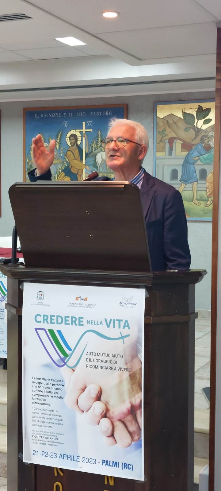 Lo scorso fine settimana si è tenuto nella nostra Diocesi (c/o il Centro di riconciliazione Presenza) il 19° Convegno Nazionale <<CREDERE NELLA VITA” – Auto Mutuo Aiuto e il coraggio di ricominciare a vivere>>, organizzato dal Coordinamento Nazionale dei Gruppi di Auto Mutuo Aiuto(AMA) per Persone in Lutto, dall’Associazione Figli in Paradiso – Ali tra Cielo e Terra e dall’Associazione “Figli tra gli Angeli” (comunità diocesana che è parte integrante da diversi anni del Coordinamento). Il Convegno ha avuto il patrocinio della Diocesi di Oppido-Palmi, del Comune di Palmi e della Presidenza del Consiglio Regionale della Calabria. Erano presenti delegazioni o gruppi provenienti da tutta Italia (Lombardia, Friuli, Piemonte, Veneto, Emilia-Romagna, Lazio, Puglia, Campania e Sicilia) e si è arricchito ulteriormente con tre coppie di genitori provenienti da Murcia(Spagna).
