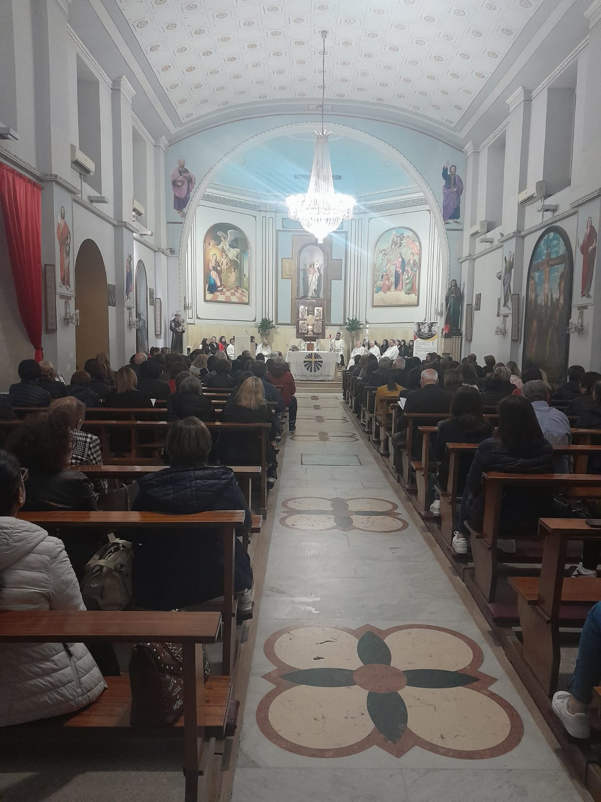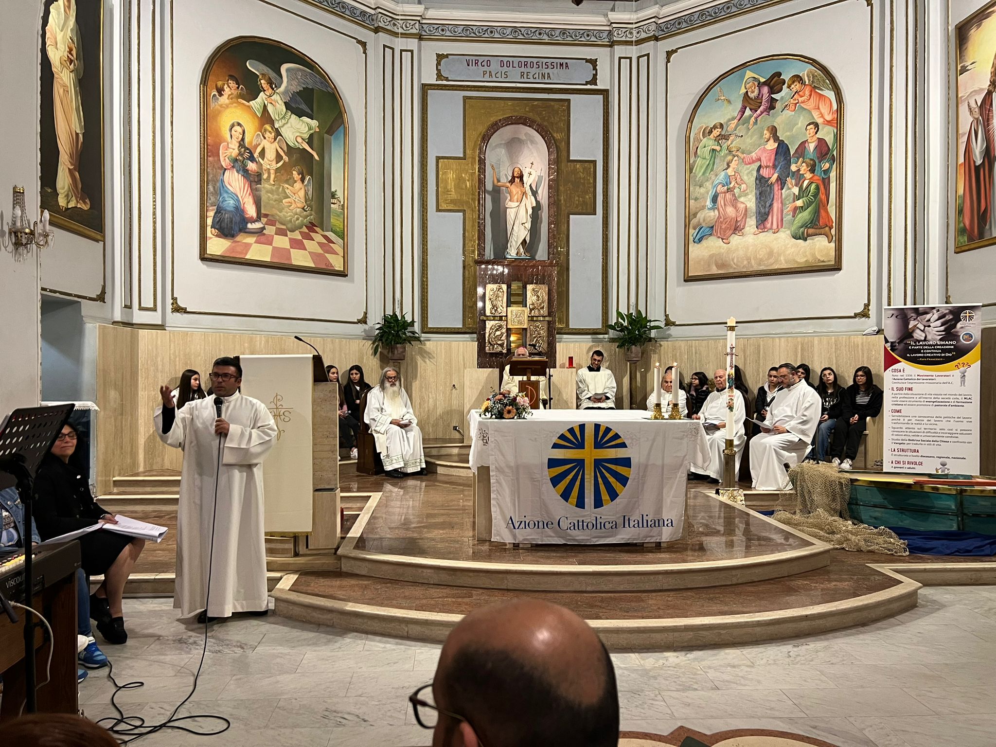 Rosarno– Grande partecipazione alla veglia di preghiera organizzata dal Movimento Lavoratori Azione Cattolica in occasione della Festa dei Lavoratori del 1°maggio presso la chiesa “Maria Santissima Addolorata” alla presenza dei parroci don Rosario Attisano e don Federico Arfuso Assistente MLAC diocesano presieduta dal Vescovo Francesco Milito.