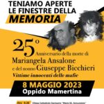 Nell’ambito della manifestazione organizzata dal Coordinamento Piana di Gioia Tauro di Libera con patrocinio del Comune di Oppido Mamertina “Teniamo aperte le finestre della memoria”, l’8 maggio, nella triste ricorrenza del 25° Anniversario della morte di Mariangela Ansalone e del nonno Giuseppe Bicchieri, il nostro Vescovo S.E. Mons. Francesco Milito, nella Chiesa Cattedrale-Santuario “Maria SS. Annunziata”, ha presieduto la Concelebrazione Eucaristica per ricordare le due vittime innocenti delle mafie.