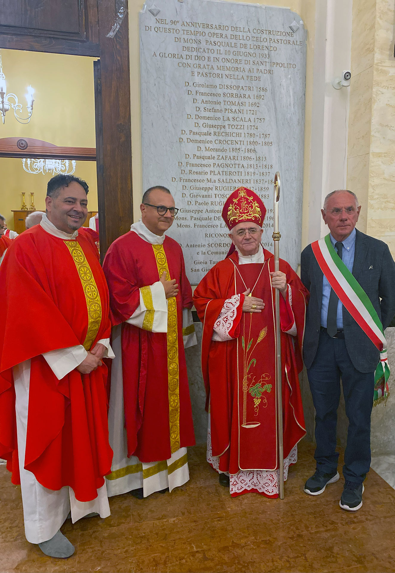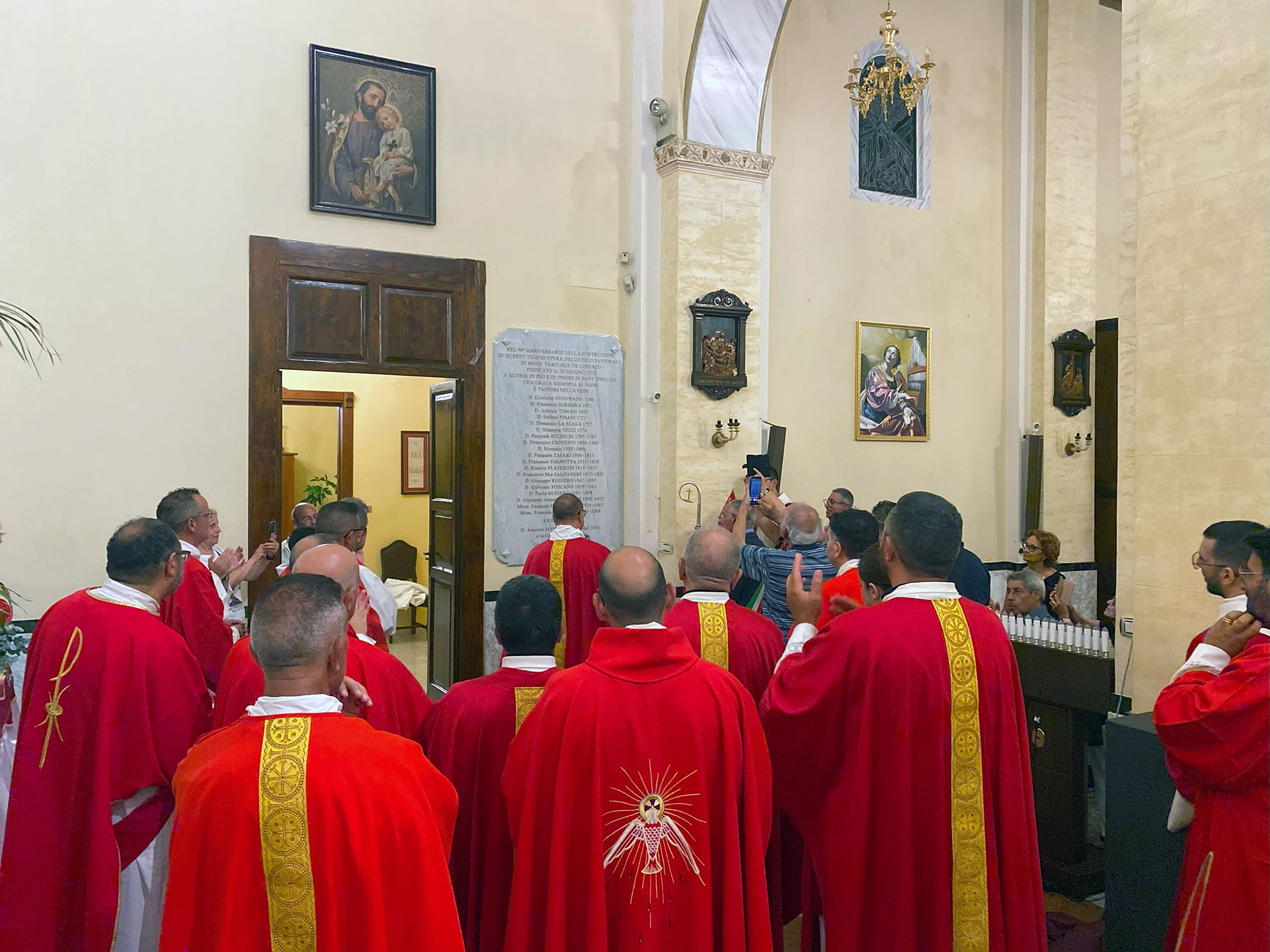 Al termine della Concelebrazione Eucaristica, S.E. Mons. Francesco Milito, il Parroco Don Antonio Scordo, il Sac. Antonio Andrello, in qualità di Direttore della Casa del Clero in Gioia Tauro, ospite presso codesta Comunità Parrocchiale, ed il Sindaco della Città di Gioia Tauro, Cap. Aldo Alessio, hanno scoperto la lastra marmorea raffigurante tutti i nomi dei Parroci che – nella Parrocchia dedicata a Sant’Ippolito Martire – si sono succeduti nel tempo.
