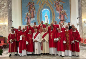 Nella Celebrazione Eucaristica i diaconi hanno voluto ricordare nell’ IX anniversario della nascita al cielo, Sua Eccellenza Mons. Luciano Bux che con tanta cura ha seguito lo sviluppo del diaconato nella nostra Diocesi. Si è poi pregato per Sua Eccellenza Mons. Francesco Milito che per raggiunti limiti di età conclude il suo ministero in Diocesi perché il Signore continui a dargli sempre quell’entusiasmo che l’ha contraddistinto in questi anni di servizio episcopale in mezzo a noi, e poi si è anche pregato per il futuro vescovo che sarà chiamato ad essere il nuovo pastore di questa porzione di Chiesa che è in Oppido Mamertina- Palmi.