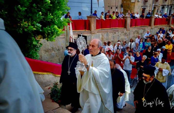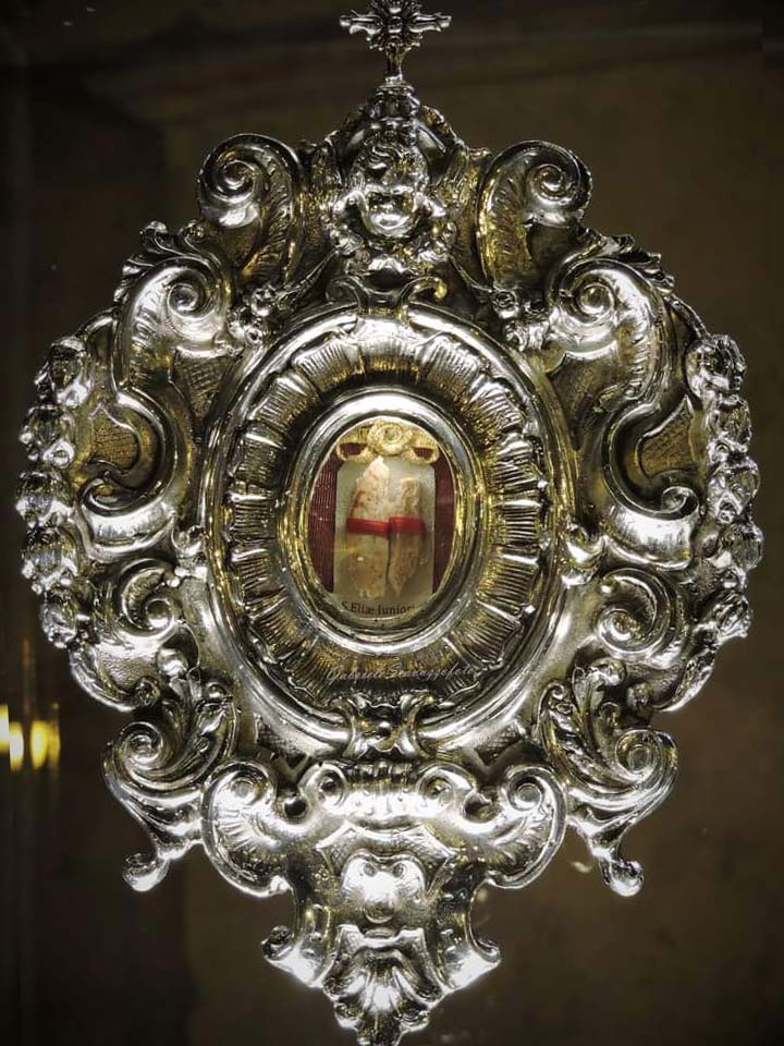 Dopo questo affettuoso saluto di Mons. Gisana, don Domenico Caruso che ha portato processionalmente la preziosa teca contenente dei frammenti ossei di Sant’ Elia prelevati dalla preziosa teca del braccio custodita da diversi secoli nella Basilica della Madonna dei Poveri in Seminara, ha consegnato la reliquia nelle mani del nostro Vescovo che l’ ha ufficialmente donata per le mani del Vescovo Gisana alla città di Enna che ha tanto desiderato questo storico momento e in questo momento la commozione è stata davvero grande in tutti i convenuti: S. Elia è tornato a Enna! Nell’omelia Mons. Milito ha voluto sottolineare l’importanza delle reliquie e come nel frammento ci sia il tutto biologico di una persona. Ha poi sottolineato la spiritualità di Elia, Santo della Chiesa, patrimonio che ci richiama all’unità e apre nuovi percorsi passando dal monachesimo che con Elia ha avuto una lunga scia di Santi come Elia Speleota, San Nicodemo, San Nilo, San Procolo e tutto il panorama italo-greco che può porre le basi per l’approfondimento di una propria teologia del Mediterraneo.