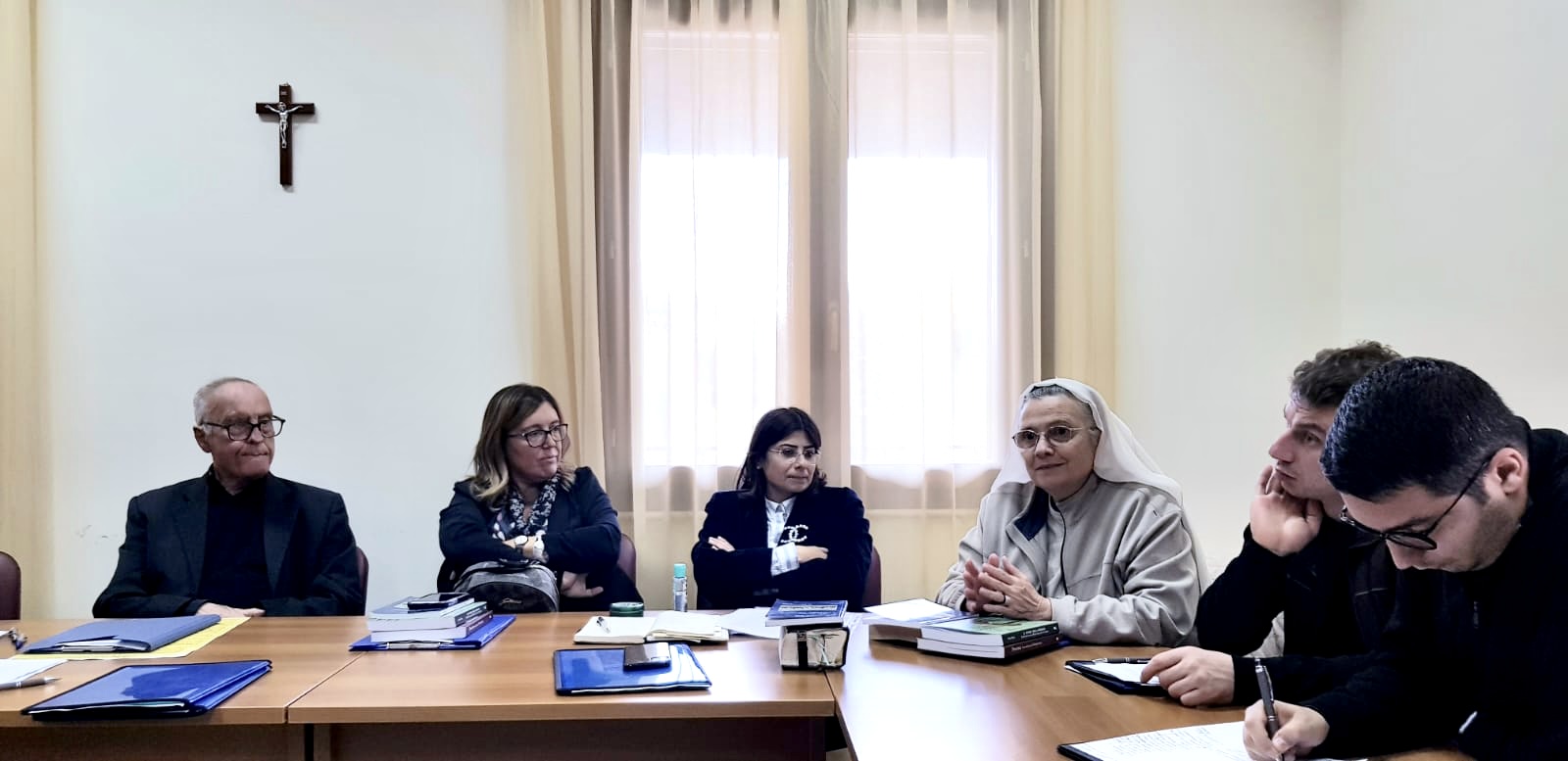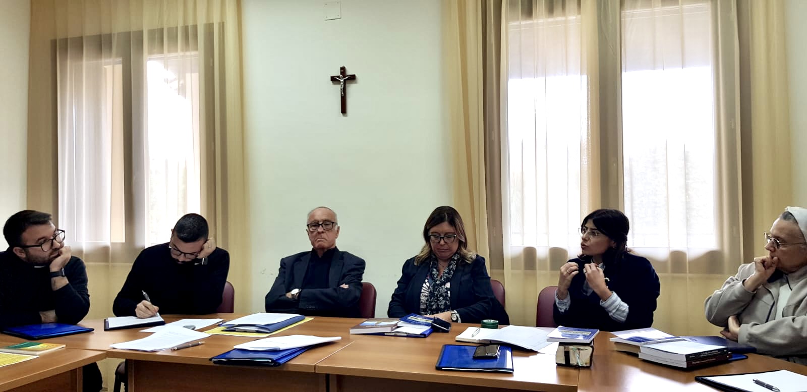 Il Presidente dell’Associazione “Presenza”, Don Silvio Mesiti, ha aperto i lavori presentando il Rettore, Don Mario Spinocchio, il quale ha fortemente desiderato questo momento di fraternità, anche in occasione dell’avvio del nuovo anno Pastorale; la dott.ssa Daniela Tortorella, Presidente del Tribunale di Sorveglianza di Reggio Calabria, attuale giudice del medesimo Ufficio nel Distretto Giudiziario di Reggio Calabria, la quale opera nella fase dell’esecuzione della pena nel rispetto dei diritti dei detenuti e degli internati; la dott.ssa Marisa Gambi, esperta nel diritto penale e nel diritto penitenziario, da diversi anni impegnata nel volontariato; Don Vittorio Castagna (sacerdote volontario presso la Casa Circondariale di Palmi), i volontari laici e religiose, Sorella Loredana Abate (FA.MO.MA.C.), Emanuela Triunfo, novizia (FA.MO.MA.C.), da quattro anni in servizio presso la Diocesi di Oppido M. – Palmi; Marisa Gambi e Giuseppe Camiciotto della Parrocchia Sant’Ippolito Martire di Gioia Tauro.