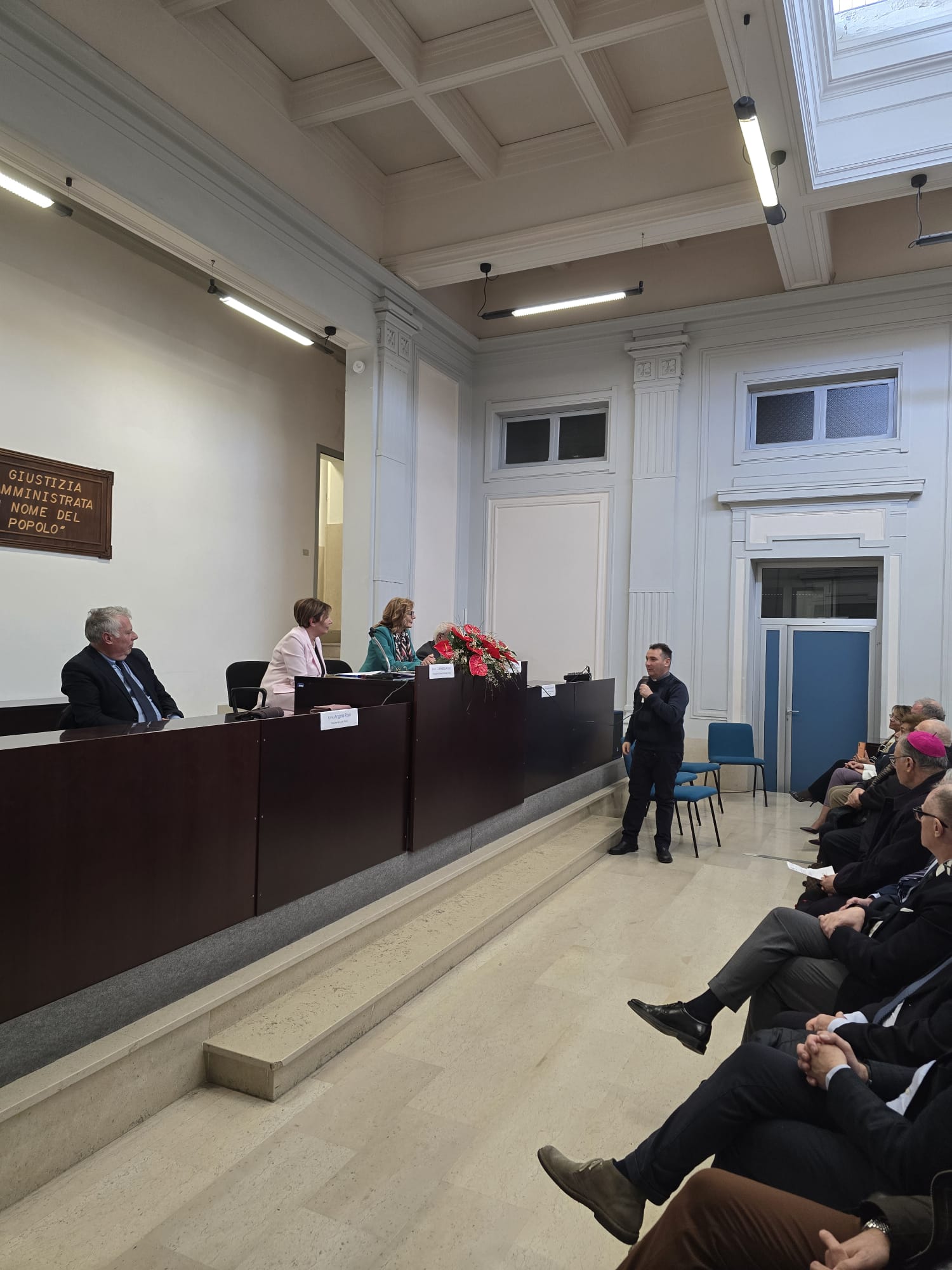 All’inaugurazione era presente anche il vescovo, S.E. mons. Alberti il quale, oltre a benedire la stanza, ha espresso profonda soddisfazione nel partecipare ad un evento di questo tipo, augurandosi che i giovani, fascia debole e che va protetta possano trovino in quell’aula veramente l’ascolto di cui necessitano e che questo sia solo un primo tassello per avviare nuove sinergie atte a fornire aiuto concreto a chi si occupa di loro. Ha espresso che l’intitolazione della stanza all’avvocato Pugliese è un valore aggiunto alla stessa vista la sua statura morale. Enzo, Vincenzo, l’avvocato Pugliese con qualunque appellativo lo si conoscesse era certamente per tutti, colleghi, familiari e amici, un vero esempio. Eleganza, signorilità, umiltà, bontà disponibilità, senso di giustizia, fervente cristianità sono solo alcune delle doti che lo caratterizzavano.