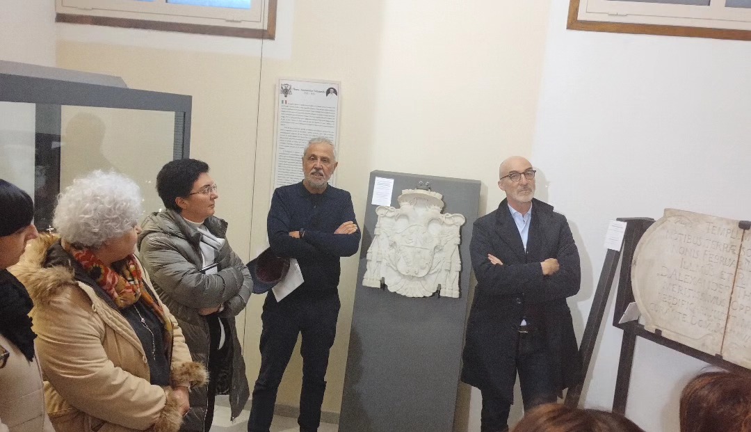 I monumenti attorno a cui eravamo disposti hanno preso vita attorno a noi, attraverso il racconto delle loro storie, dei loro autori e dei loro profondi significati. Basti pensare alle Allegorie della fede e delle speranza (prima metà sec. XIX), che con i loro benevoli sguardi e la delicatezza dei propri lineamenti, abbelliscono una sala piena di opere marmoree. Tra i vari stemmi vescovili risalta quello del vescovo Alessandro Tommasini, scolpito da maestranze calabresi tra il 1792 e il 1818. L’insegna è ricca di particolari e mostra in tutto il suo splendore la regalità del rinascere attraverso i numerosi simboli che comunica all’osservatore, narrando una coraggiosa storia di “resilienza” del tempo in cui Oppido, ridotta in macerie dal terremoto, stava imparando a risorgere accanto al suo tenace pastore. Il pavone, simbolo d’immortalità, la fenice, anch’essa simbolo della vita dopo la morte e all’ulivo, simbolo biblico della rigenerazione, accanto alla torre di Oppido divengono emblemi della ricostruzione di una società dopo tempi di profondo smarrimento.