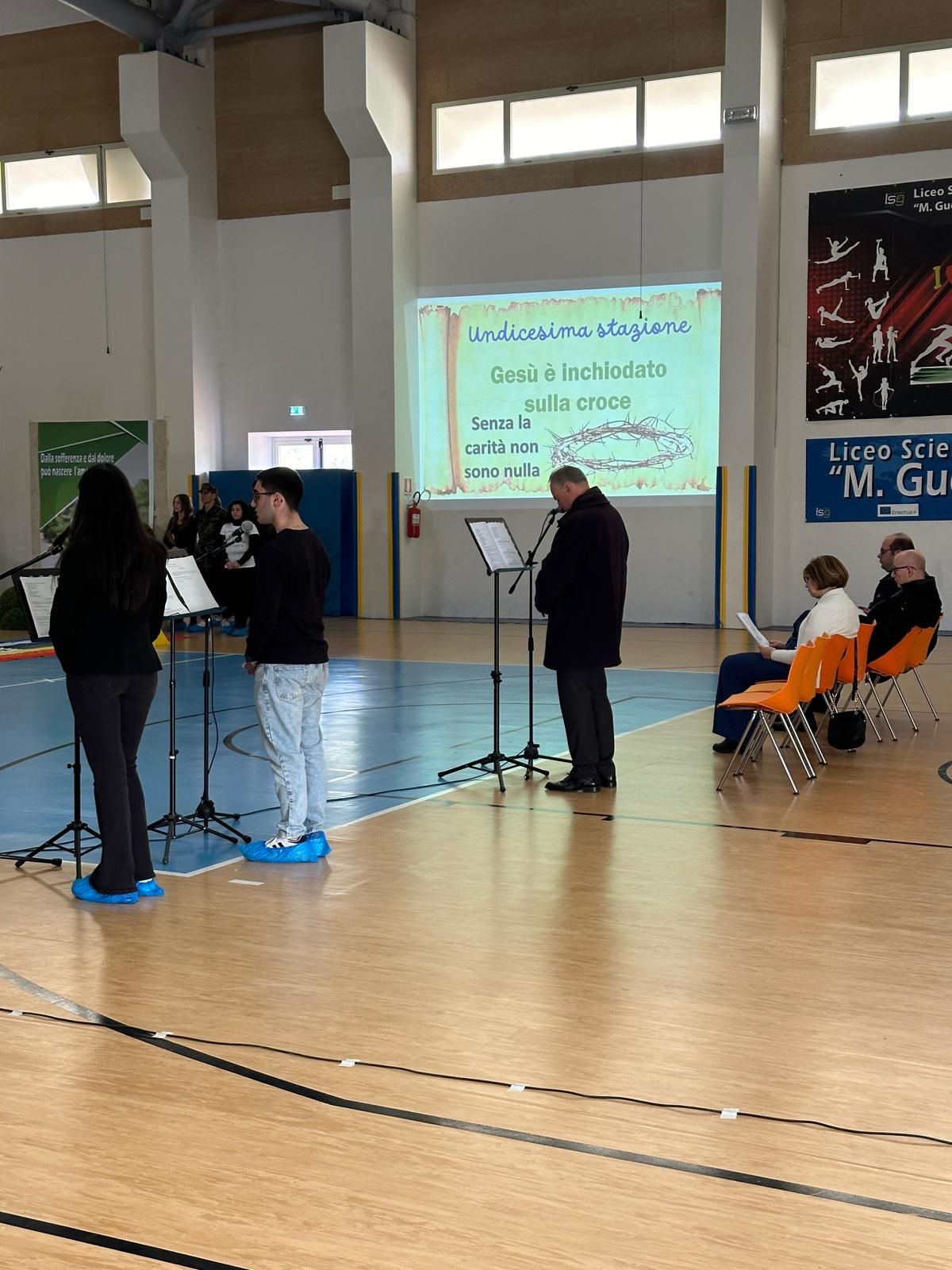 In un clima di grande commozione si è svolta al Liceo Scientifico M. Guerrisi di Cittanova, un momento di riflessione dal titolo “Dalla sofferenza e dal dolore può nascere l’amore”. Grati a S. Ecc. Mons. Giuseppe Alberti, vescovo della Diocesi di Oppido M. Palmi che ha accolto l’invito a presiedere la Via Crucis, per i giovani con i giovani. Con il presule presenti anche don Letterio Festa, don Nuccio Borelli e don Salvatore Giovinazzo.