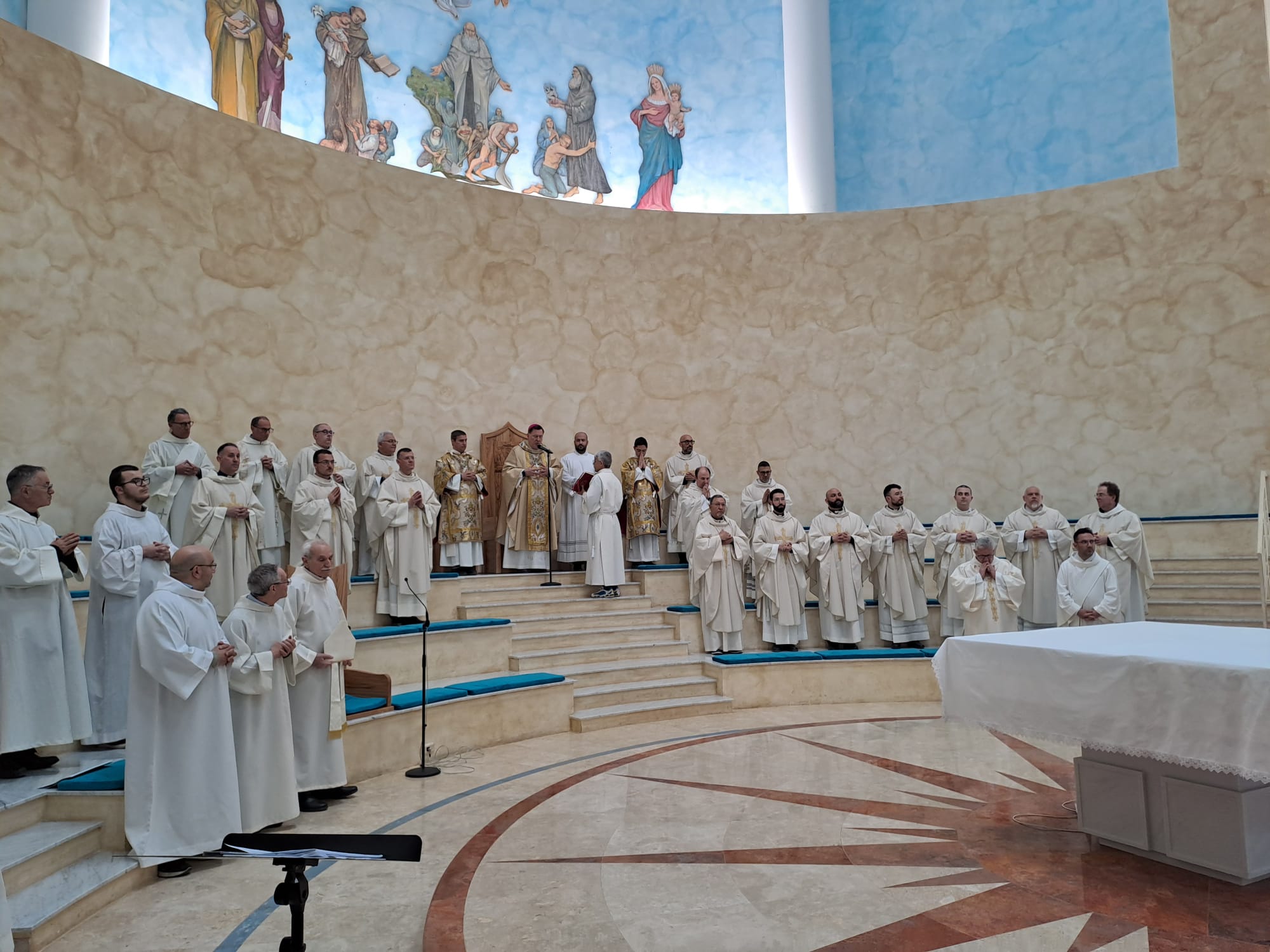 Nel pomeriggio si sono svolti i gruppi di lavoro coordinati dai facilitatori e con la consapevolezza che il confronto ha il compito di narrare la propria esperienza liturgica si è partiti condividendo l’aspetto che aveva colpito l’attenzione di ciascuno tra cui la formazione come conformazione, lo stupore, la centralità di Cristo e la formazione come testimonianza; Partendo dal presupposto che la liturgia è incontro con Cristo siamo stati invitati a rispondere a come superare atteggiamenti rubricisti e organizzativi, e dai gruppi è emersa una certa fatica al farlo ma anche l’importanza della cura del silenzio, della preghiera personale, e della preparazione. E invitati poi a pensare un passaggio da una dimensione formativa contenutistica ad un’esperienza d’iniziazione liturgica si è dato valore alla testimonianza, alla cura nella preparazione, nel tornare a credere a ciò che facciamo e celebriamo in modo che sia liturgia stessa ad educare e formare. La giornata si è conclusa con la celebrazione dei Vespri, presieduti da S. E. mons. Serafino Parisi vescovo della diocesi che ci ha ospitati.