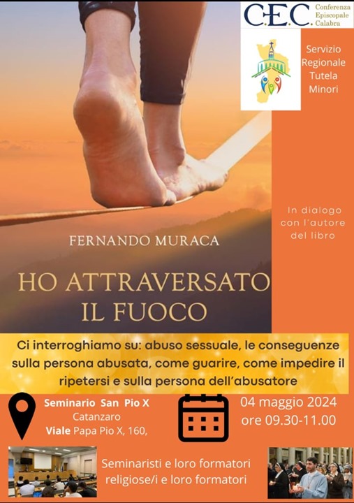 Il 4 maggio scorso al Seminario Teologico Regionale “S. Pio X” di Catanzaro, l’affermato regista, sceneggiatore e scrittore Fernando Muraca, nel presentare il suo libro “Ho attraversato il fuoco” ispirato ad una storia vera, affronta con competenza, chiarezza e delicatezza il dramma dell’abuso infantile, mettendosi in gioco anche come testimone.