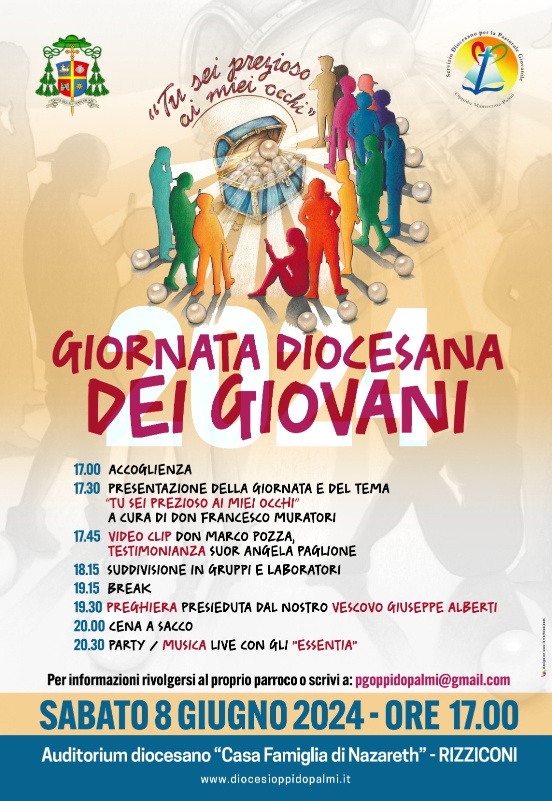 È una gioia annunciarvi l’evento della Giornata Diocesana dei Giovani che terremo a Rizziconi l’8 Giugno. Sarà certamente una bellissima esperienza da vivere nella gioia dello stare insieme guardando alla preziosità che c’è in ognuno di noi. Con le parole di Papa Francesco: “Voi giovani siete la gioiosa speranza di una Chiesa e di un’umanità sempre in cammino” che attinge “la Gioia nella Speranza dal mistero pasquale di Cristo, dalla forza della sua risurrezione”.