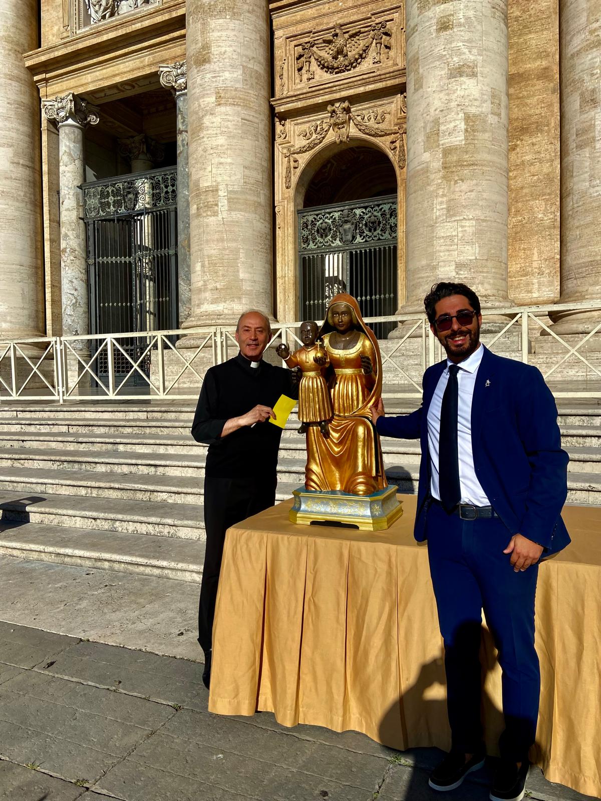 La Comunità di Seminara, accompagnata dal Parroco e Rettore della Basilica Minore- Santuario “Madonna dei Poveri”, si è recata a Roma per far benedire la copia, ad altezza naturale, (101 cm) della millenaria Madonna nera, la Madonna dei Poveri.