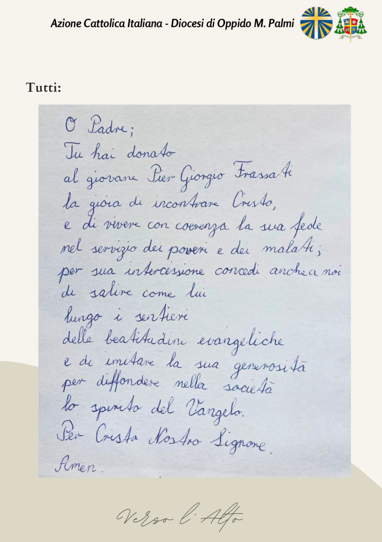 «Mentre percorrevamo il sentiero immersi nella bellezza del creatoha spiegato Angela Giuliano, presidente dell’Azione cattolica diocesana di Oppido M. – Palmi – abbiamo avuto l’opportunità di riflettere sulla bellezza dei passi del nostro pellegrinaggio spirituale. Ogni passo è stato un momento di preghiera e contemplazione, un modo per rinnovare il nostro impegno come Azione Cattolica a seguire l’esempio di Pier Giorgio Frassati che ci ha insegnato che la santità è alla portata di tutti, che è possibile vivere il Vangelo nella quotidianità con gioia e coraggio. Il suo motto “Verso l’Alto” ci ricorda che la nostra vita è un cammino continuo verso la santità, fatto di piccoli e grandi gesti d’amore e di servizio verso gli ultimi. Che il Signore ci accompagni sempre – ha concluso la presidente – nel nostro cammino e che il Beato Pier Giorgio interceda per noi».