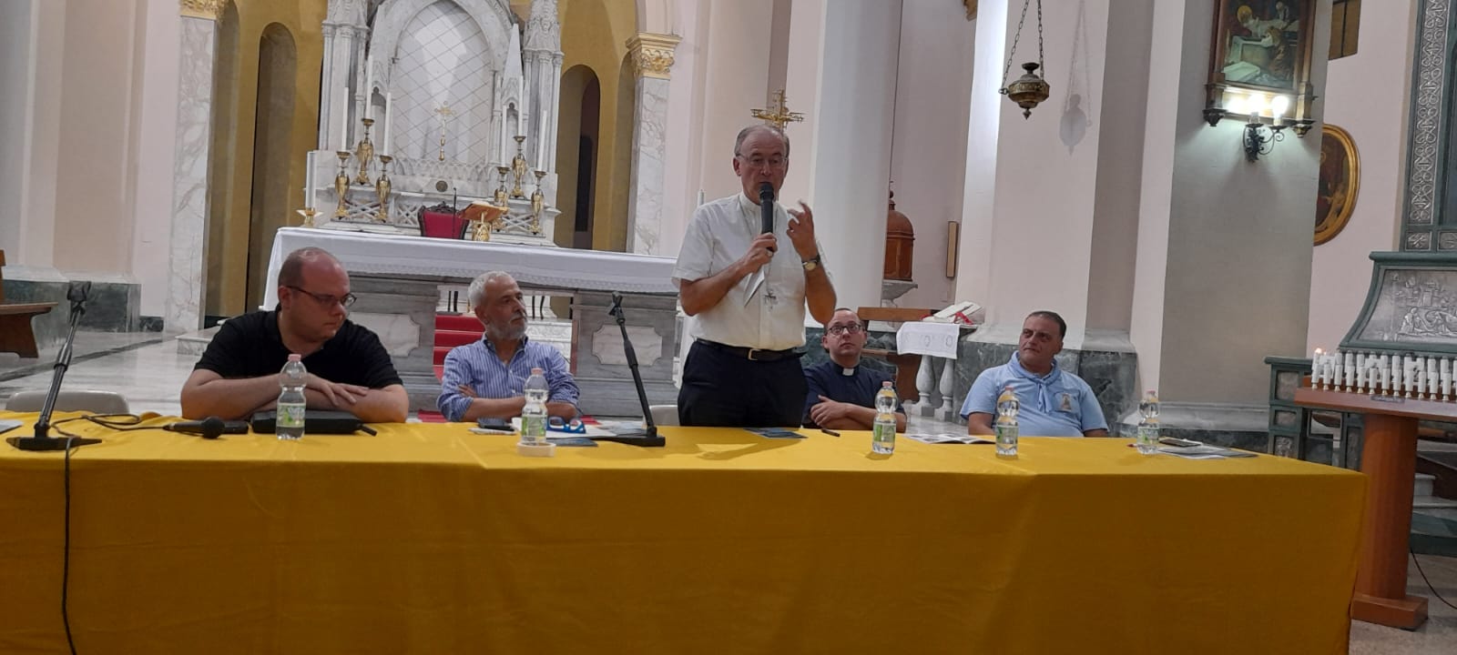 La ricerca ha portato risultati straordinari: 12 chiese e 5 parrocchie intitolate, decine di Statue, dipinti, bassorilievi dedicati all’Assunzione di Maria in anima e corpo in cielo”, ha affermato l’ing. Martino che ha introdotto e moderato la serata anticipando che sul tema dell’Assunzione come radice religiosa della Varia di Palmi, il prossimo inverno ci sarà un seminario di grande respiro organizzato dalla Diocesi di Oppido Palmi, per il quale ha chiesto l’aiuto e la collaborazione di tutti. Don Domenico Loiacono, Arcidiacono della Concattedrale di Palmi, ringraziando il Vescovo per questa mostra si è detto felice del fatto che la Chiesa abbia ripreso il dialogo con questo evento. L’avv. Cardona, Presidente del consiglio Comunale, ha portato il saluto dell’Amministrazione comunale ed ha dato massima disponibilità a collaborare per il seminario sulla Varia.