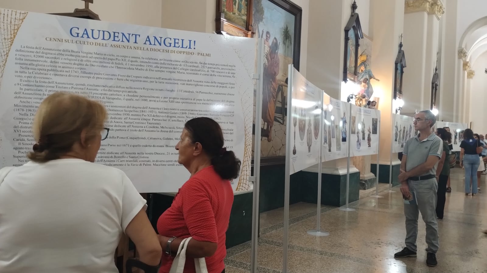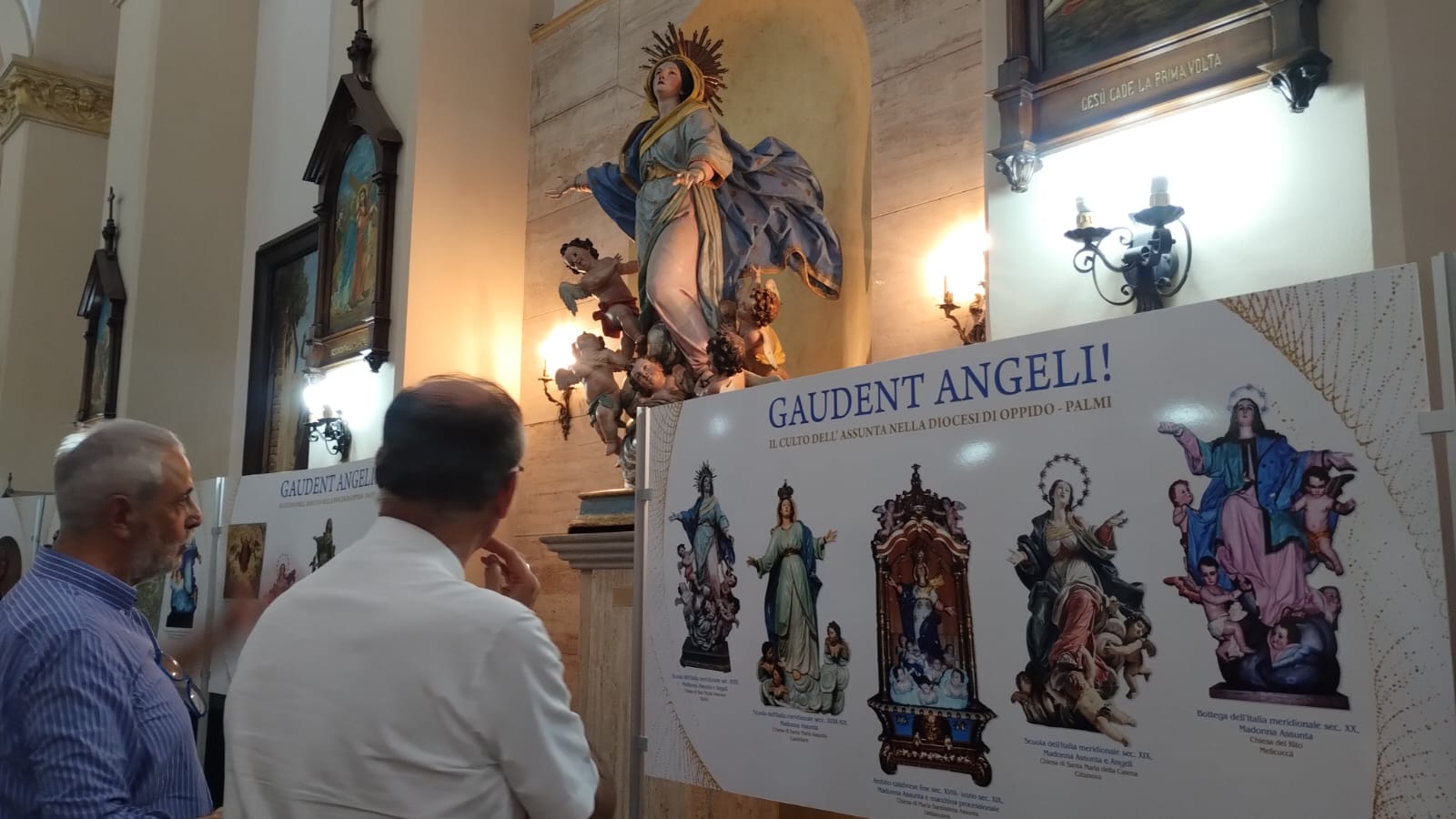 La stessa Varia di Palmi del grande Maestro Giuseppe Militano presenta con grande coerenza il tema dell’Assunta dal quale trae origine e motivazioni. La mostra itinerante Gaudent Angeli, curata dall’ufficio diocesano per i BB.CC.EE., presenta quasi tutte le immagini (statue, dipinti, disegni, metalli) presenti nella nostra Diocesi. L’esposizione è stata inaugurata dal Vescovo Mons. Giuseppe Alberti il 19 agosto 2024 e resterà aperta fino al 31 Agosto presso la Concattedrale a Palmi anche in occasione della Varia. “La mostra è nata dalla curiosità dell’Equipe Diocesana per i BB.CC.EE. di capire quale devozione per l’Assunta ci fosse in Diocesi nel 1900, quando Militano costruì la Varia di Palmi.