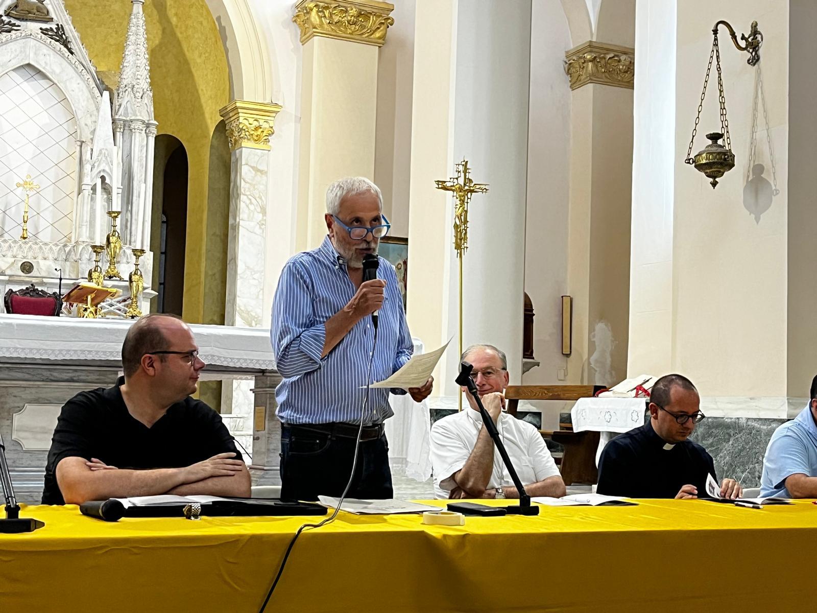 Il Dott. Gianni Parrello sul sodalizio della Festa della Madonna della Lettera ha portano un’emozionante testimonianza di uomo di fede e di cultura. Don Letterio Festa, direttore dell’archivio Storico della Diocesi e storico, ha tracciato i lineamenti storico e religiosi dell’inscindibile legame tra la Varia e l’Assunta, sottolineando la fede di Giuseppe Militano. Ha concluso il Vescovo Alberti che ha evidenziato che la devozione popolare, quando è genuina, va compresa, seguita, eventualmente corretta, ma anche incoraggiata. Per questo ha ribadito che sta seguendo per compredere questo evento di popolo complesso e di dimensioni notevoli che è la Varia.