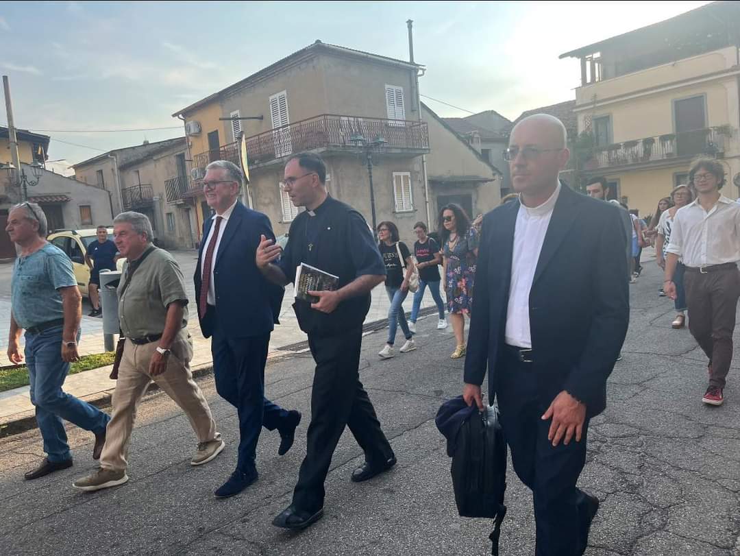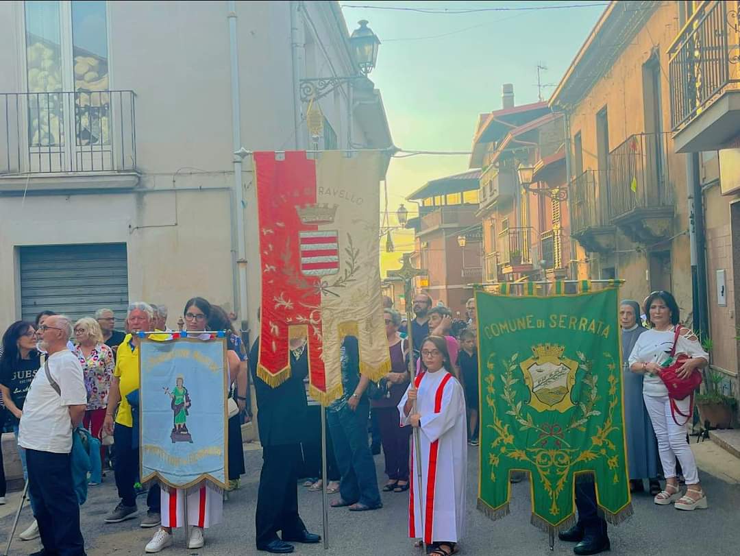 Un festoso corteo ha poi raggiunto la Chiesa parrocchiale dove si è celebrata la Santa Messa presieduta dal parroco di Ravello don Raffaele Ferrigno. Dopo la Messa la delegazione di Ravello insieme a rappresentanti di diverse Associazioni parrocchiali e civili serratesi hanno cenato presso il suggestivo giardino storico dell’Assessore Fortunata Calì degustando i prodotti tipici serratesi. Dopo cena alle 21.30 in Chiesa si è svolto un Concerto dei CoriUniti Calabria dal titolo: “Al Martire Santo”.