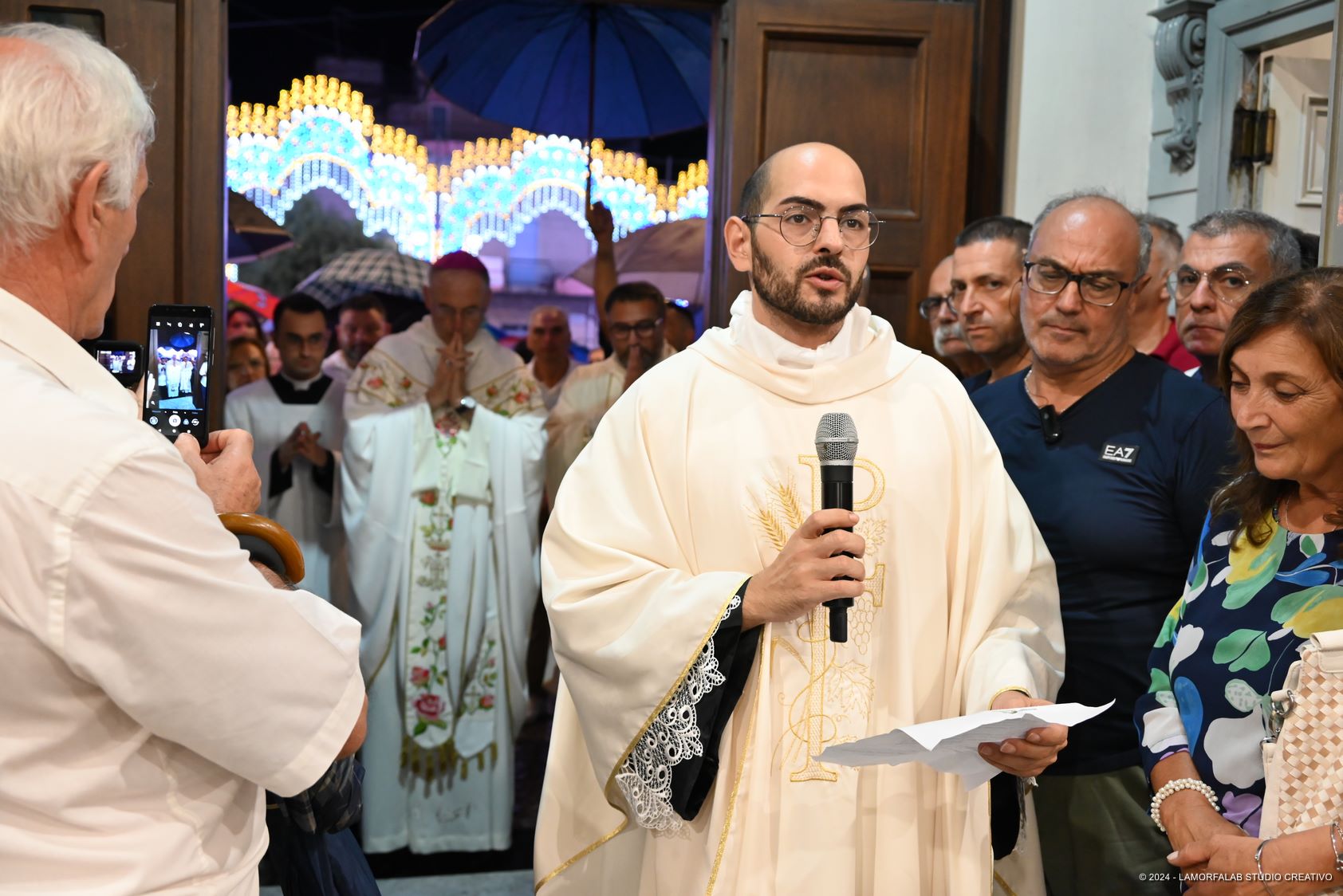 Il Parroco don Mino Ciano nel suo saluto iniziale in cui ha ringraziato il vescovo mons. Giuseppe Alberti per aver chiesto alla Santa Sede il dono straordinario di questo anno giubilare parrocchiale ha detto: “Maria ha alzato lo sguardo verso l’alto, verso il basso, destra e sinistra, formando con il suo amore materno una croce. Indicandoci che la nostra via, la nostra meta finale, deve essere il cielo ma attraverso la vita terrena, avendo accanto a noi persone verso le quali dobbiamo vivere attenzione e carità; quindi, ci ha mostrato la via della redenzione la via della salvezza in quella stessa croce che poi è apparsa con il cielo al centro della luna a conferma della presenza di Cristo. Ecco si chiude per noi un anno straordinario, quello del 130° anniversario dei Miracoli e grazie al grande dono che Lei ha voluto fare a questa comunità, inizia un altro anno di grazia”.