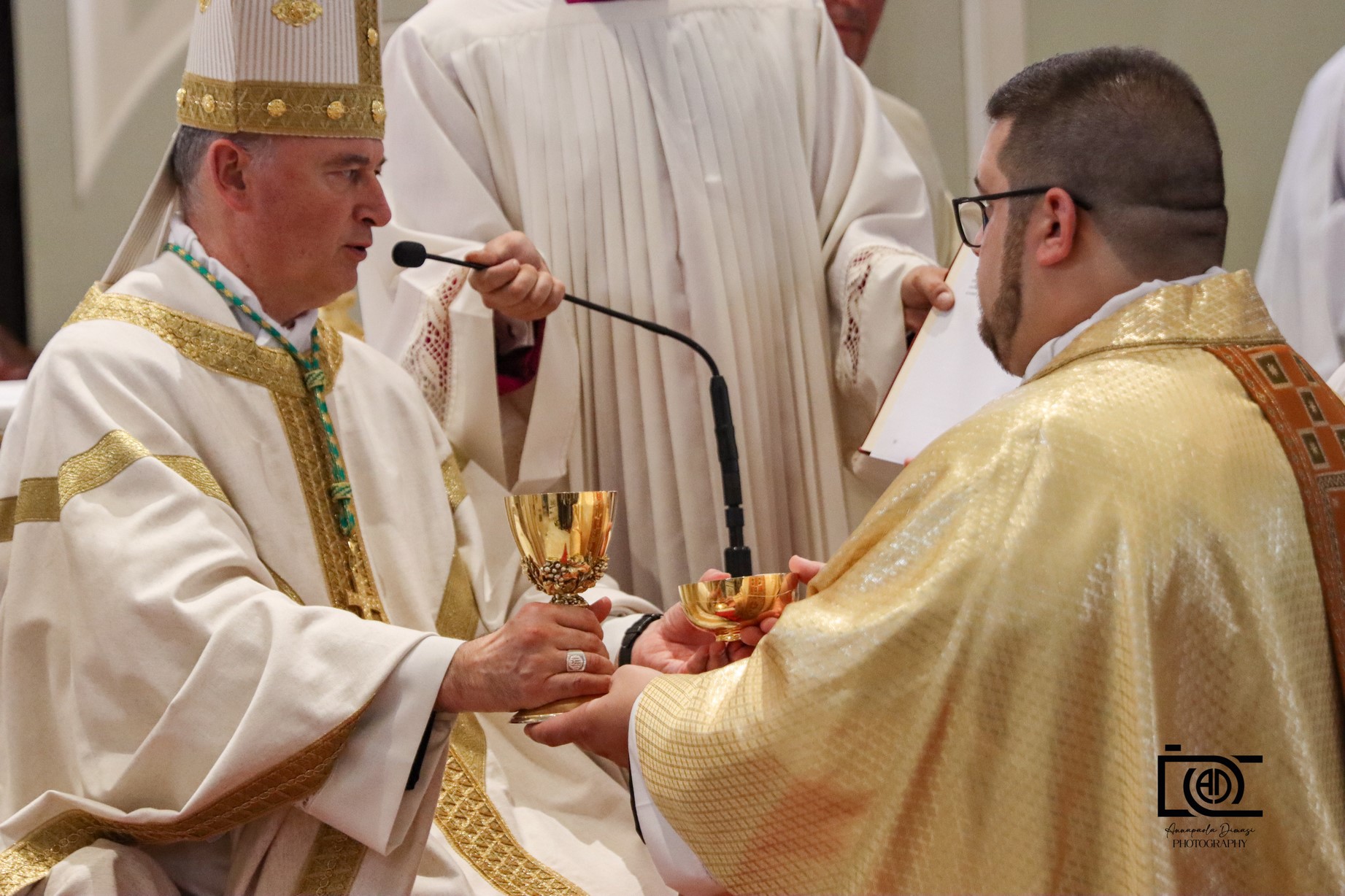 Nel ricordare agli ordinandi che il  ministero sacerdotale è per definizione un servizio nella Chiesa, riconosciuto, istituito perché la comunità credente si alimenti dei doni divini che generano e fanno crescere nella fede, il Vescovo ha ricordato che i cristiani hanno bisogno di uomini di Dio, che parlino di Lui; innamorati di Cristo, a tal punto che attraggono altri a seguirlo; umili servi della comunità, perché l’unico interesse è favorire comunione e creare fraternità; liberi da se stessi così da poter andare dietro al Signore e non al mondo e alle sue promesse. Compito certamente arduo ma con la certezza che il Signore è fedele alle sue promesse e con la sicurezza, come proclamato nella lettura del profeta Isaia, che anche nei momenti più difficili e oscuri, nelle opposizioni e nelle incomprensioni, il Signore ci assiste e che tutto possiamo in colui che ci dà la forza.
