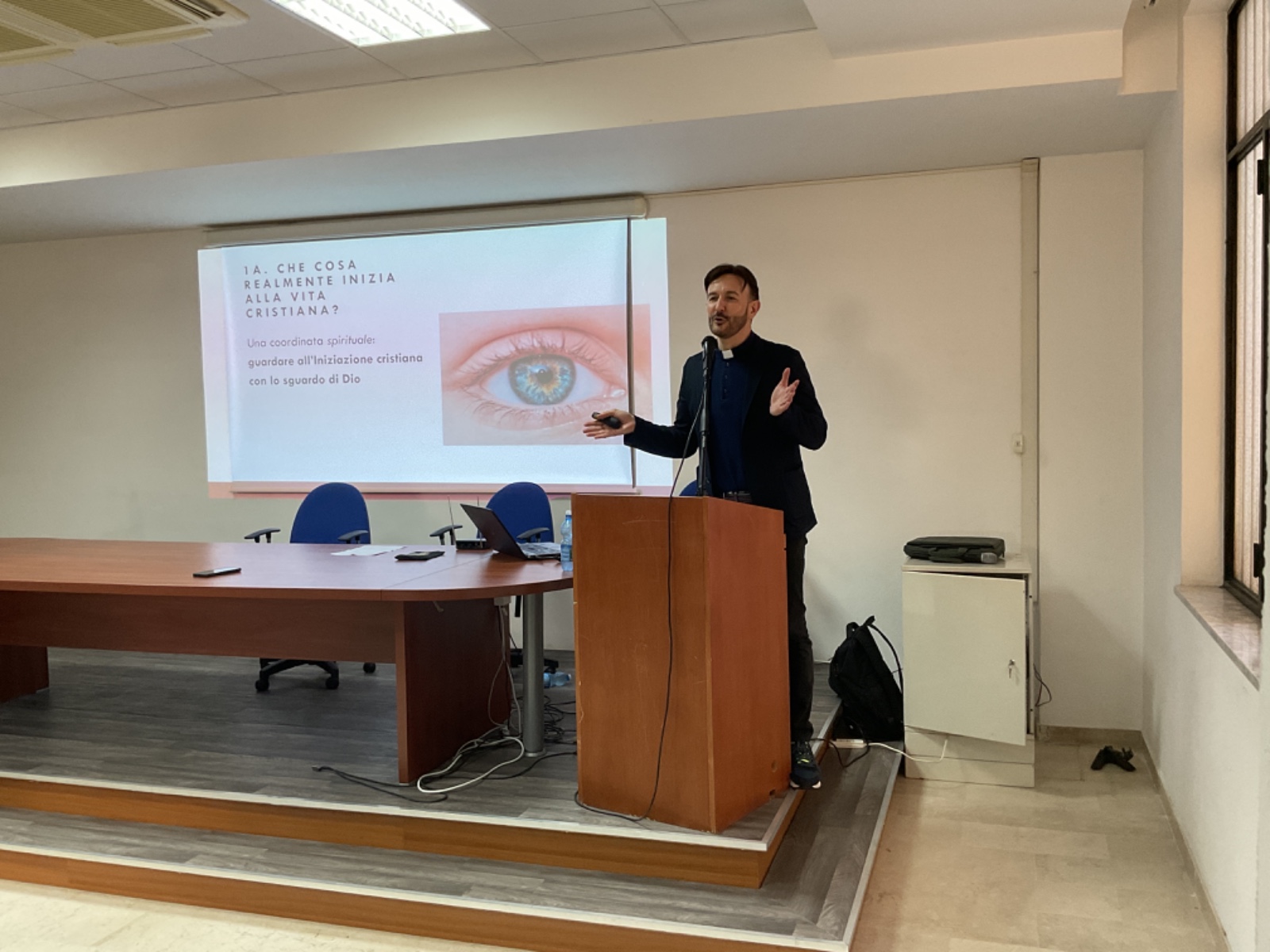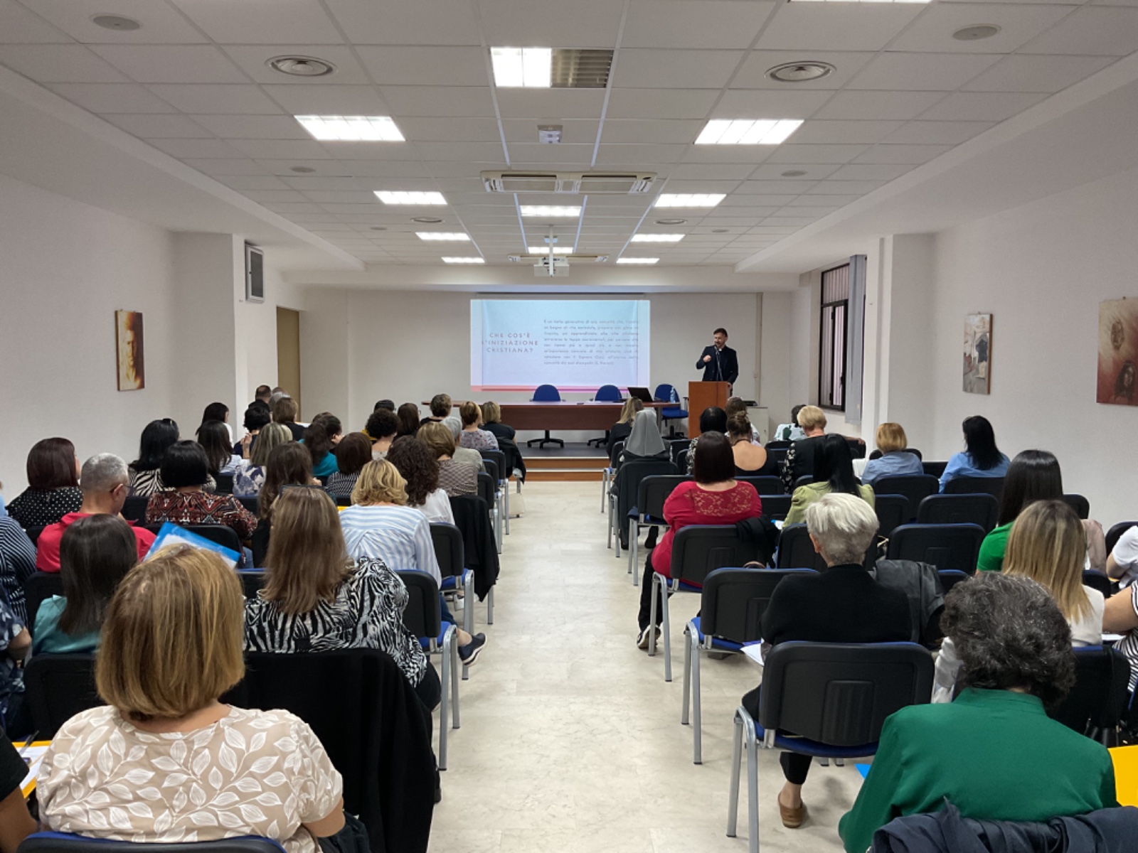 Il relatore durante il suo illuminato intervento, ha presentato le due dimensioni da cui guardare l’iniziazione cristiana: la Prospettiva Spirituale ed Ecclesiale: sono, infatti, le comunità cristiane che favoriscono l’azione di Dio attraverso l’ascolto, la vita sacramentale e la vita fraterna sul modello di Atti 2, 42), ma spesso – bisogna dirlo – non sempre sono consapevoli di dover fare spazio a Dio.