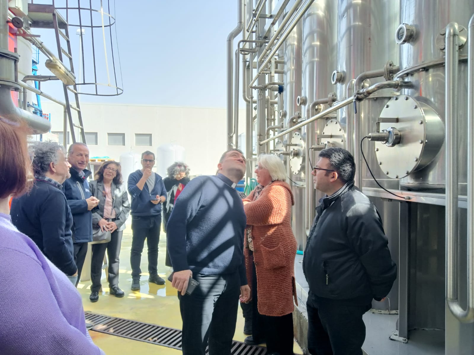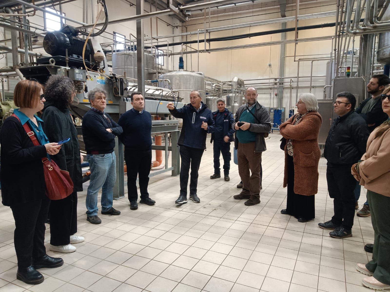 Dai campi di produzione ci si è spostati presso l’azienda “Gioa succhi s.r.l.” sita nella prima area industriale. Ivi i titolari hanno presentato la loro seconda famiglia ed illustrato le varie fasi che portano dalla materia prima al prodotto semilavorato e la loro destinazione finale. Indubbiamente è stata una veritiera ed efficace testimonianza di lavoro dignitoso in cui la ricchezza sociale ha prevalso su quella privata. Ciò è stato possibile grazie alla condizionalità sociale per cui il lavoro rispettoso, in quanto tale, non ha osato colpire l’anello debole della produzione, ossia il lavoratore che è, invece, valore aggiunto. “Bisogna guardare la Calabria con gli occhi rivolti al futuro!”- ha sostenuto il commissario straordinario del Consorzio di bonifica regionale, Giacomo Giovinazzo. Effettivamente se la piana di Gioia Tauro nasce con tendenza agricola, non bisogna dimenticare come lo sguardo al futuro abbia portato alla nascita della realtà portuale. Il percorso è continuato verso l’azienda “Allera Costruzioni Metalmeccaniche s.r.l.”. L’imprenditore, Cosimo Allera, ha testimoniato i sacrifici e l’estrema convinzione con cui ha realizzato e portato avanti la sua impresa, ossia per dare seguito all’attività-passione scoperta già in tenerissima età per la lavorazione del ferro e, inoltre, per i suoi lavoratori e le loro rispettive famiglie. Per loro ha fatto fronte alle crisi del 2008, del 2018 e del 2020 che hanno messo a dura prova anche la sua azienda e ora afferma orgoglioso che per favorire l’occupazione, soprattutto giovanile, e la formazione di personale specializzato nel settore della metalmeccanica, ha avviato la procedura del tutor-padre che insegna al figlio-lavoratore.