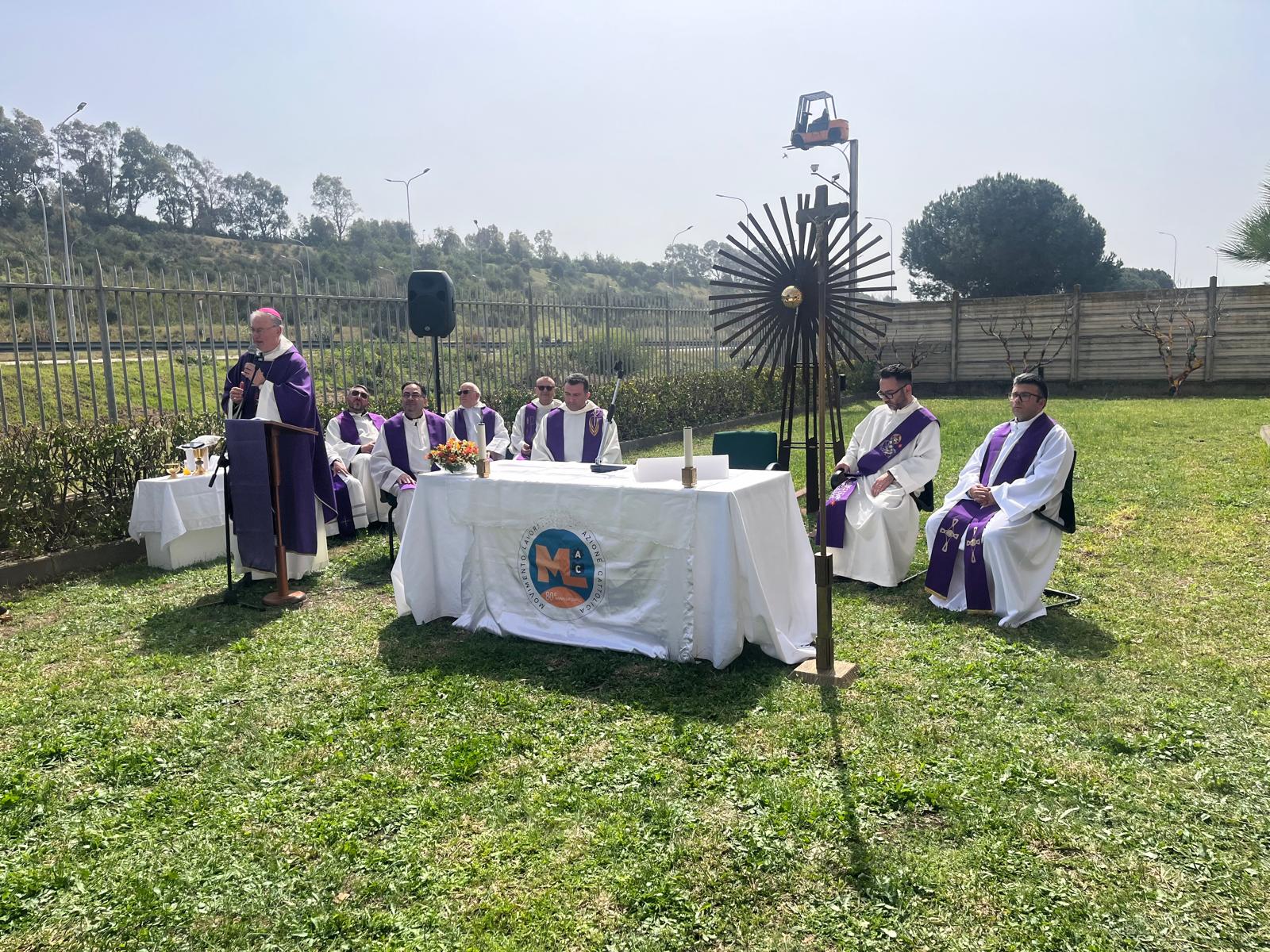 Queste testimonianze pratiche hanno trovato compiutezza e culmine nella solenne celebrazione eucaristica tenutasi presso la stessa azienda Allera, presieduta dal Vescovo Alberti e concelebrata dai parroci delle parrocchie di Gioia Tauro e di San Ferdinando, dal vicario foraneo don Giovambattista Tellieci, dall’assistente diocesano don Federico Arfuso, dal diacono don Michele Vomera e con la presenza del cappellano del porto di Gioa Tauro, don Gildo Albanese.