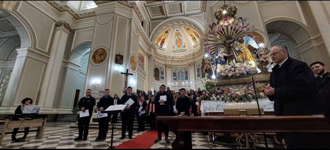 Subito dopo, la musica ha profondamente emozionato il numeroso pubblico presente, con brani come Beata sei Tu, Annunciazione del Signore, Maria Custodiva, Salve Maria, Ave Maria, Alma Redemptoris e Sub Tuo Praesidium, eseguiti su musiche di B. V. Modano, M. Frisina, D. Lando e S. Di Biasi. All’organo Giusy Alessi. I testi sono stati curati dalla presidente Ioculano.