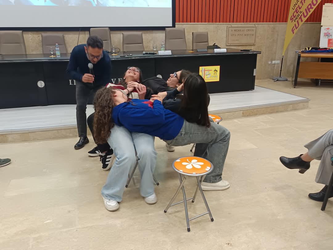 Un elemento distintivo dell’incontro è stata l’interattività, gli studenti, all’ingresso, hanno, infatti, ricevuto un QR code che li ha indirizzati ad un canale condiviso. Durante l’incontro, hanno quindi risposto ad alcune domande e le loro risposte sono state elaborate in diretta, consentendo una riflessione collettiva sulle tematiche trattate.