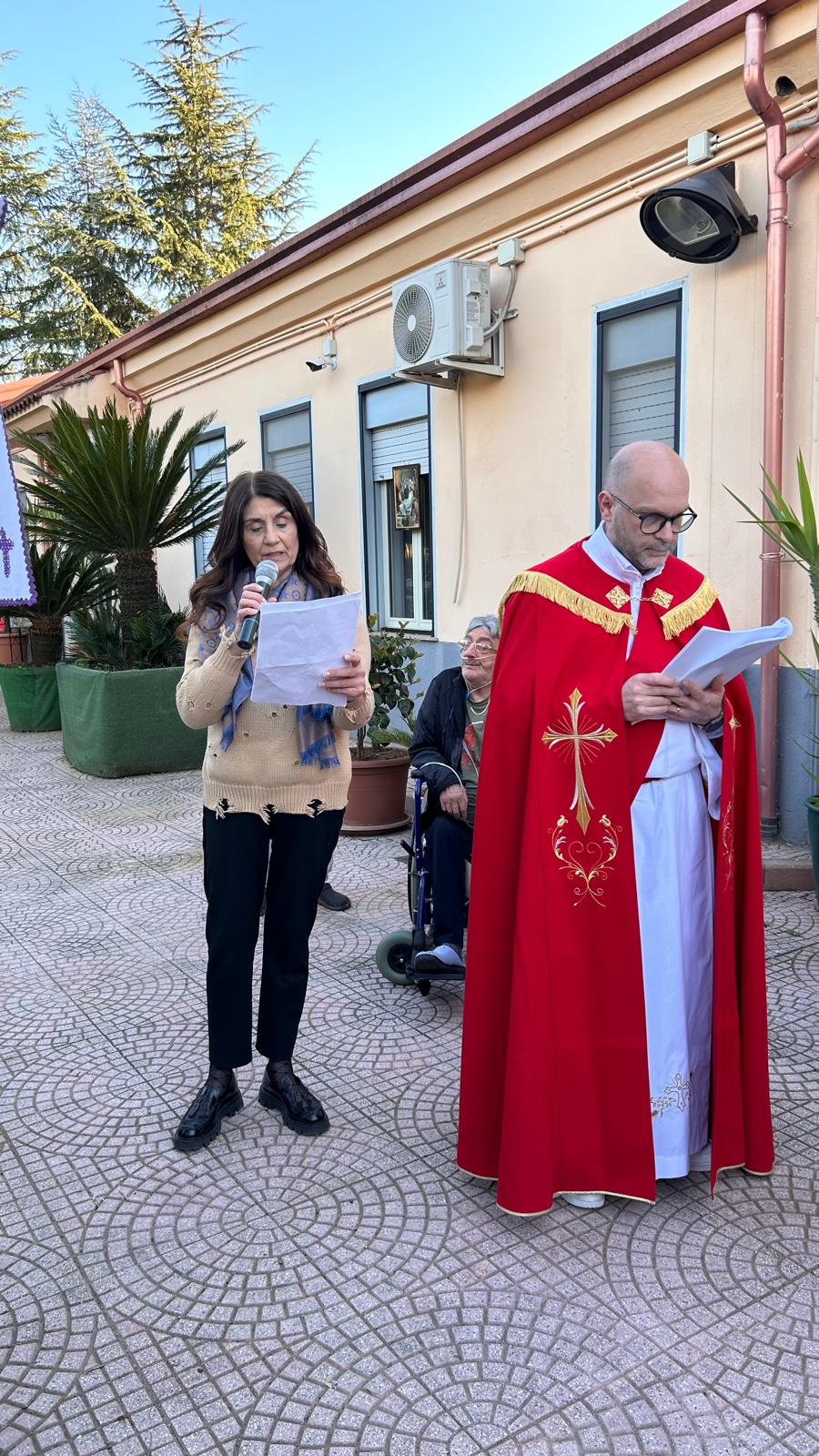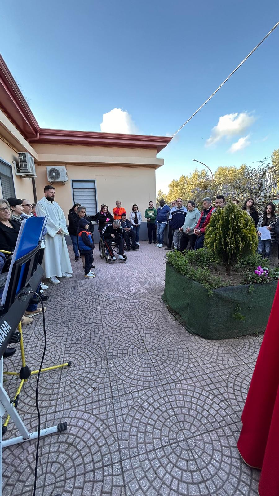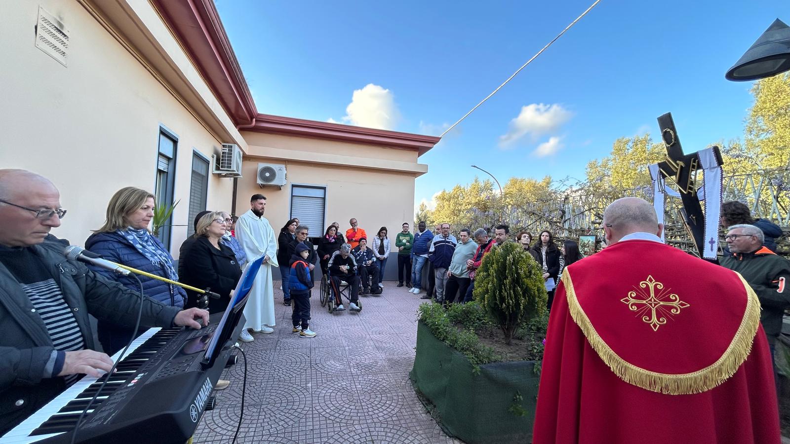 Un’intensa e toccante celebrazione della Via Crucis si è svolta ieri presso la Casa Famiglia di Castellace, una struttura che accoglie con amore e dedizione persone fragili e malate. L’evento, fortemente voluto dal parroco don Antonello Messina, ha rappresentato un incontro profondo tra spiritualità e solidarietà. A presiederlo è stato il diacono don Massimo Surace, accompagnato dai fedeli della parrocchia di Santa Maria Assunta, che hanno partecipato con raccoglimento e partecipazione sincera.