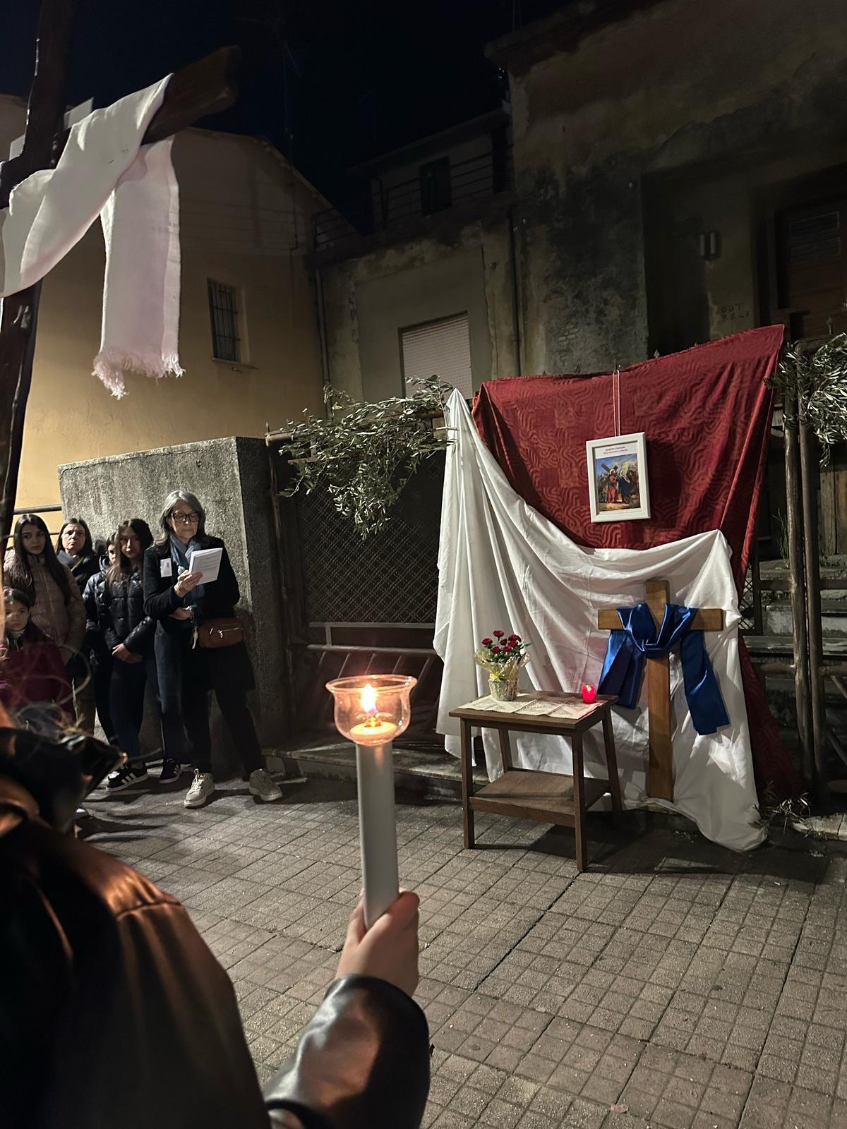 A rendere tutto ancora più significativo è stata la cura con cui ogni stazione è stata preparata: altarini semplici ma ricchi di significato, realizzati grazie alla collaborazione fra il gruppo giovani e gli abitanti del paese. Un lavoro collettivo, fatto non solo di mani, ma di cuori messi insieme per costruire un percorso vivo.