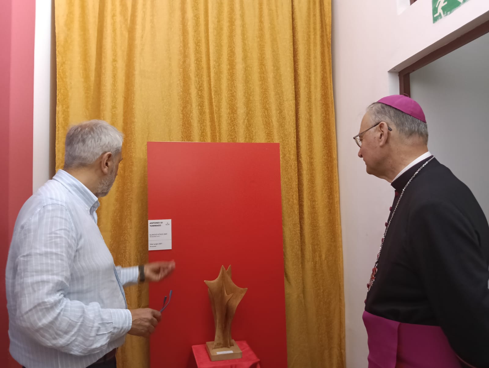 Durante il suo intervento, il Vescovo, Mons. Giuseppe Alberti, ha voluto sottolineare l’importanza del dialogo continuo tra la Chiesa e il mondo artistico contemporaneo. Un confronto, ha detto, necessario per comprendere i linguaggi espressivi del nostro tempo e per riuscire a parlare, in modo autentico e profondo, alle donne e agli uomini di oggi. Il presule ha espresso vivo apprezzamento per la qualità delle opere esposte e per il coraggio dell’iniziativa, che rappresenta una testimonianza concreta di come l’arte, anche nelle sue forme più attuali e sperimentali, possa diventare veicolo di spiritualità e introspezione.