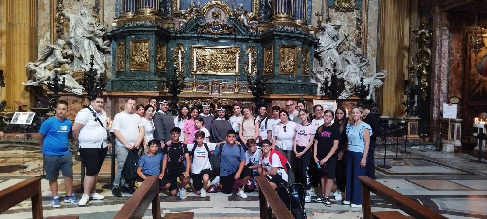Un pellegrinaggio che ha dato loro una grande opportunità di sperimentare una connessione profonda con la propria fede, con la Chiesa e con la comunità parrocchiale e globale. Entusiasti e stupiti delle bellezze e delle meraviglie del Signore, dal passaggio delle tre porte Sante che si trovano nelle Basiliche Papali Maggiori (San Pietro in Vaticano, Santa Maria Maggiore e San Giovanni in Laterano); alla visita del Pontificio Seminario Romano e di diverse Chiese della Città dove sono custoditi i corpi di grandi Santi, quali Santa Caterina da Siena nella Basilica Santa Maria sopra Minerva, e San Luigi Gonzaga presso la Chiesa di Sant’Ignazio al Corso.