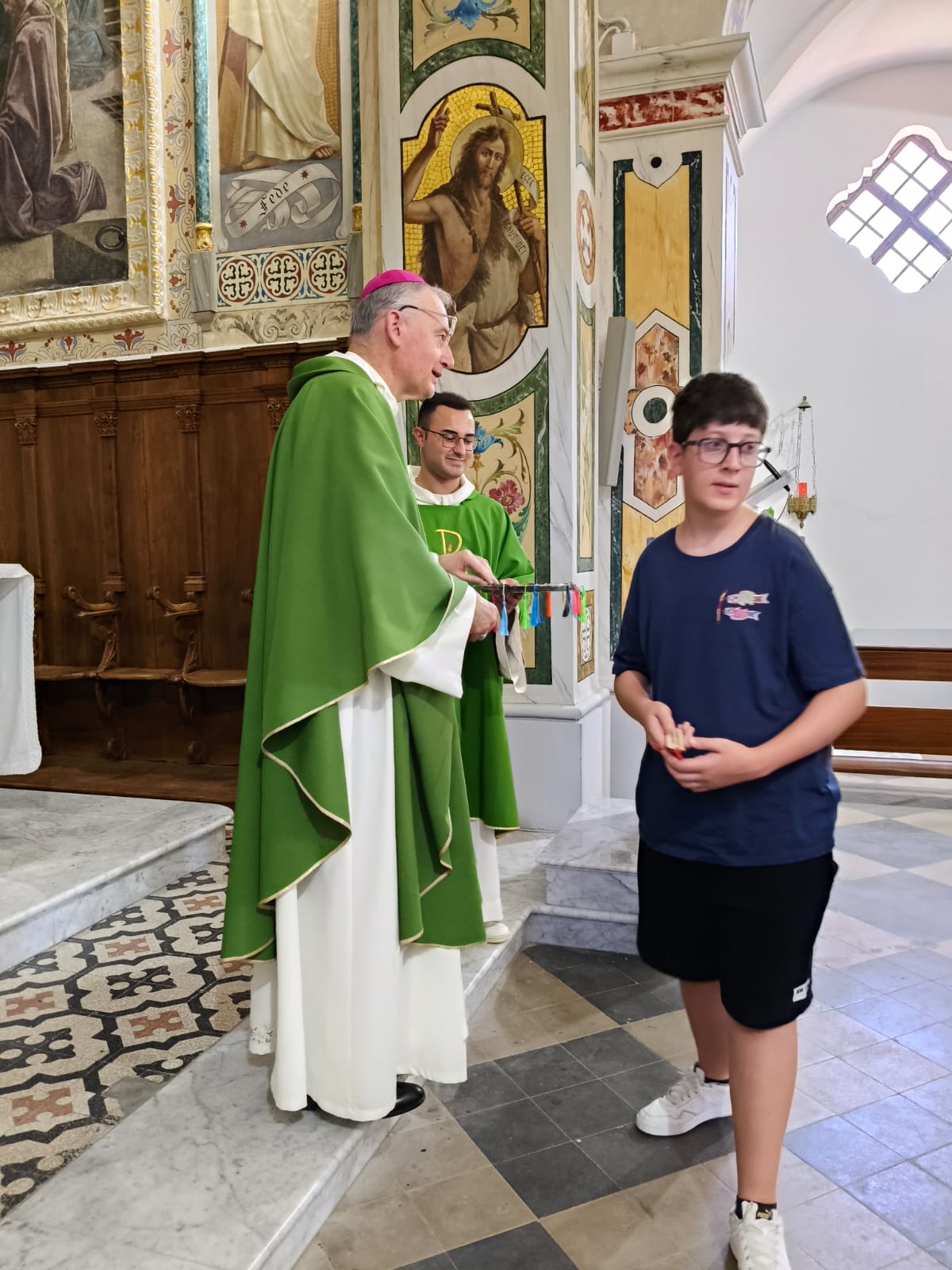 Un momento di particolare grazia è stata la visita del nostro vescovo, mons. Giuseppe Alberti, che ha trascorso con noi una significativa mezza giornata. Ha ascoltato con attenzione la verifica dei giovani, raccogliendo le emozioni, le parole, i semi di vocazione che stanno germogliando nei loro cuori. Durante la Celebrazione eucaristica, il vescovo ha invitato i ragazzi a non aver paura di accogliere la Parola di Dio e di obbedirle, ricordando loro che «obbedirai alla voce del Signore, tuo Dio, osservando i suoi comandi» (Dt 30, 10). Ha poi indicato nella figura del Buon Samaritano un modello concreto per la vita cristiana: farsi prossimo, piegarsi sulle ferite dell’altro, vivere l’amore non a parole ma con gesti reali. «Solo così – ha ricordato mons. Alberti – si può abitare nella felicità vera, quella che non si compra e non si consuma, ma che nasce dall’incontro con Cristo e si costruisce ogni giorno nel servizio».