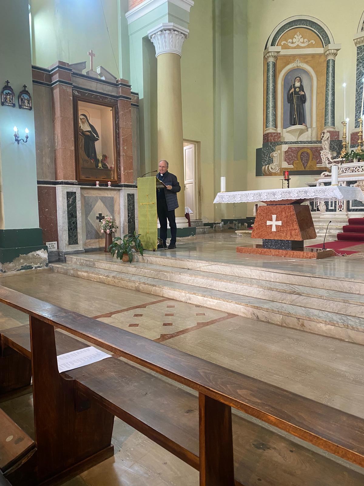 È seguita la solenne concelebrazione eucaristica presieduta dal nostro vescovo che, nell’omelia, ha sottolineato come resti urgente e necessaria la preghiera per la pace, soprattutto la preghiera del Santo Rosario, perché pregare per la pace ci aiuta a far crescere una cultura di pace, a educarci alla pace, per imparare percorsi di riconciliazione e vivere esperienze di fraternità. Per noi che siamo la Chiesa del Signore è importante soprattutto camminare nello stile sinodale e con l’atteggiamento missionario, mettendo al centro del nostro vivere il Signore che significa far parlare di più in noi la Parola, lasciare spazio all’ascolto di Dio e degli altri. In questo nostro essere Chiesa si devono inserire pure i lontani, i poveri, i giovani, anche se sembrano indifferenti al messaggio cristiano, grazie al nostro atteggiamento missionario, di apertura verso tutti, senza distinzioni o preclusioni, come fa Gesù con Zaccheo, perché una comunità cristiana missionaria è sempre capace di accoglienza e di ospitalità, e così diventare “casa” per tutti.
