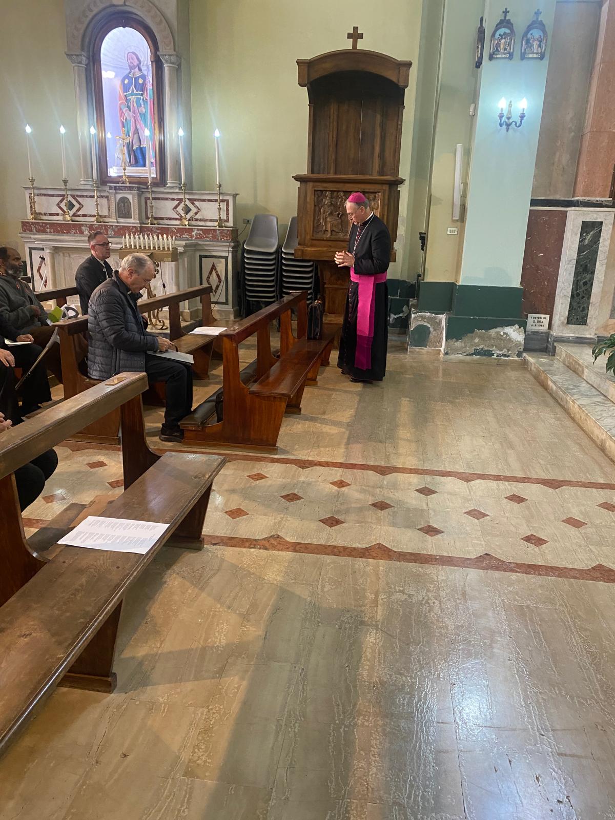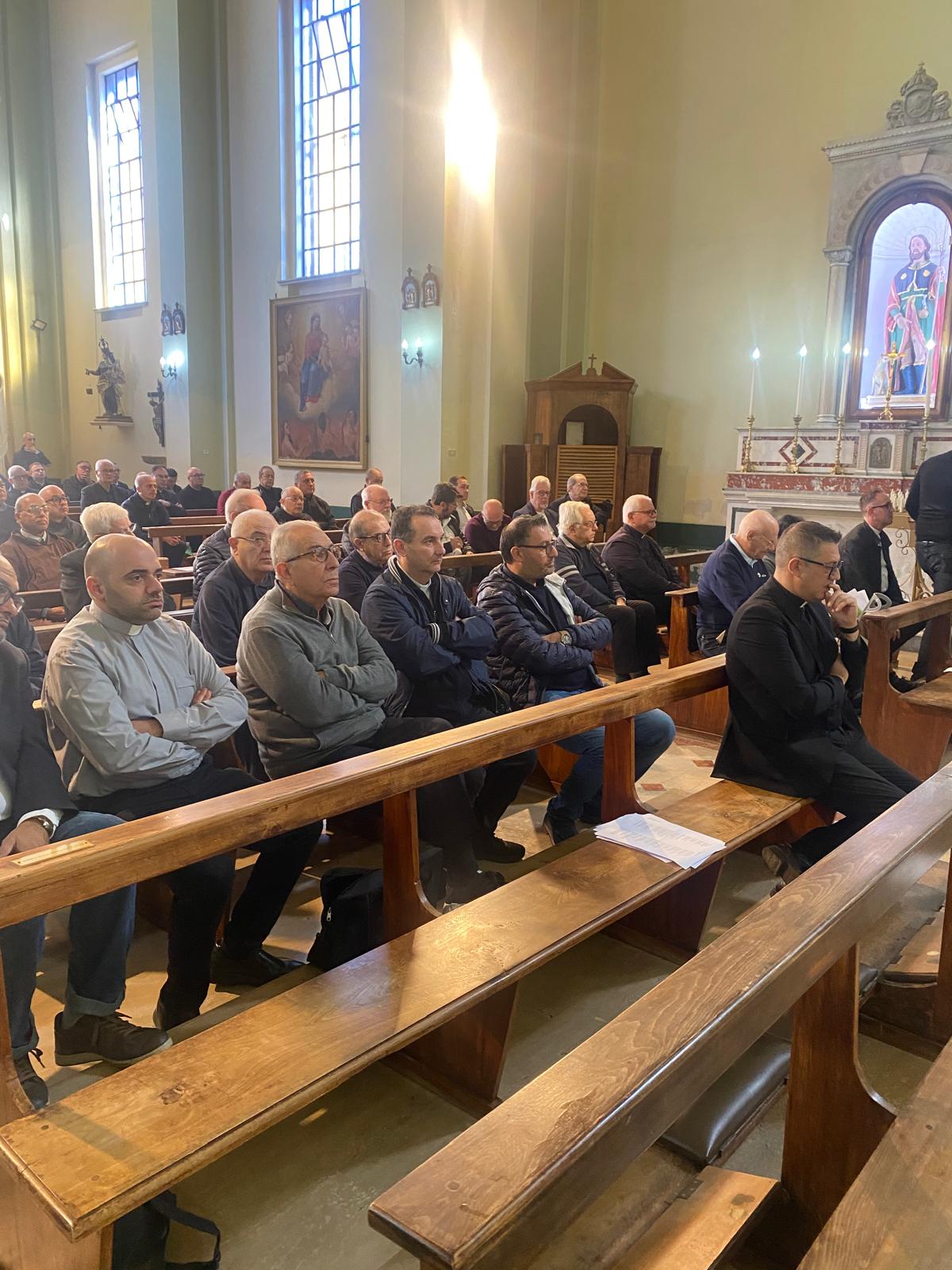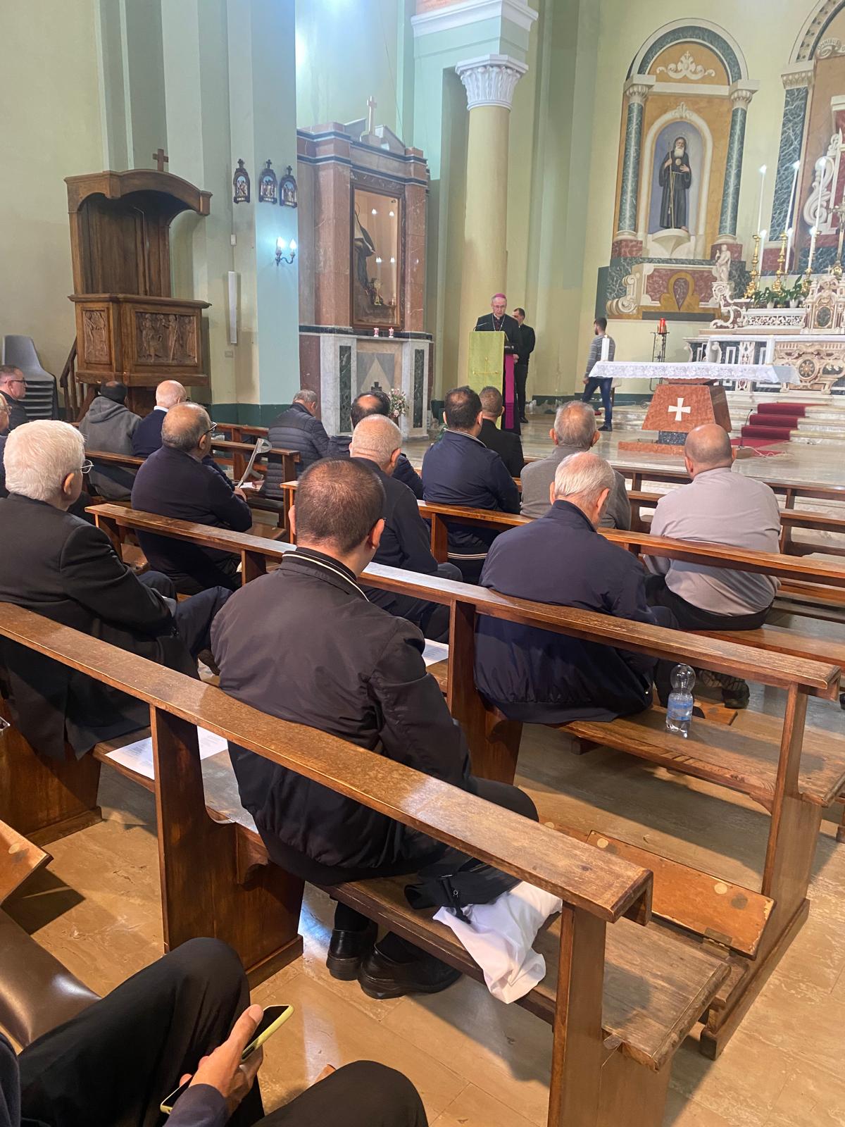 Dopo la recita dell’ora media presso la Chiesa dell’Abbazia, Mons. Fortunato Morrone, arcivescovo di Reggio Calabria-Bova, ha guidato la meditazione in cui, a partire dal tema della Eucaristica, ho esortato sacerdoti e diaconi a essere presenza del Signore, sempre animati dalla fede in un Dio che è vicino, si lascia toccare, si lascia mangiare. Ha sottolineato come sia importante, in un tempo in cui predomina tanta complessità, spesso tanta disperazione, vivere in pienezza il Giubileo della Speranza, guardando alla bellezza che c’è in noi e negli altri, perché chi vive di speranza risorge ogni giorno, coscienti che “mai dire mai” è il linguaggio di Dio che deve animarci nel nostro peregrinare e tradursi in un ripartire costante per realizzare, dentro questo presbiterio, in questo tempo e in questi luoghi il regno di Dio.