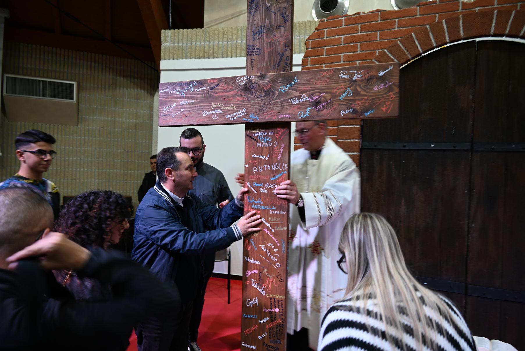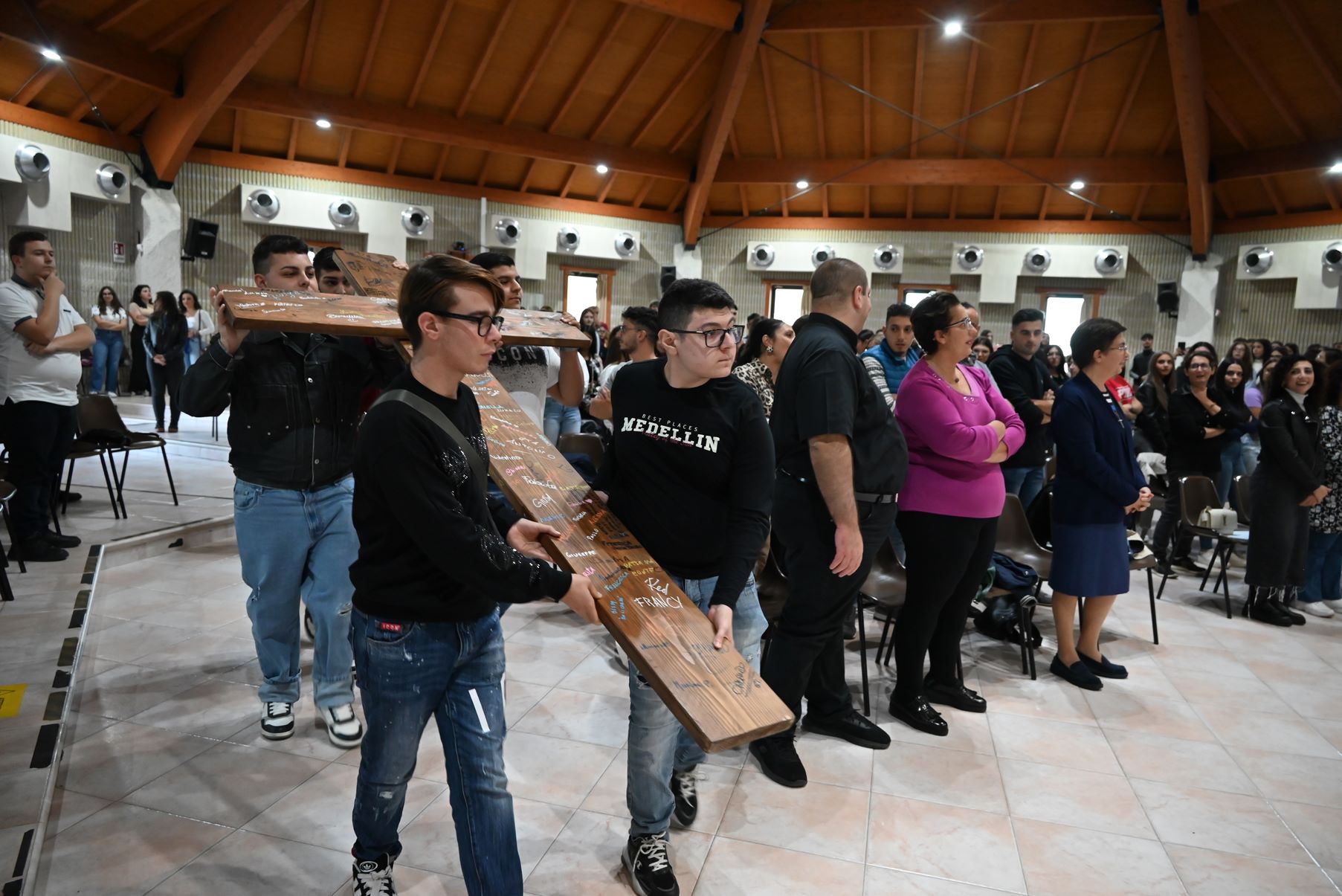 Il pomeriggio si è concluso con un momento di preghiera gestuale comunitaria, segno tangibile di una fede condivisa che si fa corpo e movimento. Poco prima dei saluti finali, è stato annunciato l’inizio della Peregrinatio della croce: il segno della croce visiterà le parrocchie della diocesi, diventando presenza viva e stimolo alla comunione tra i giovani.
