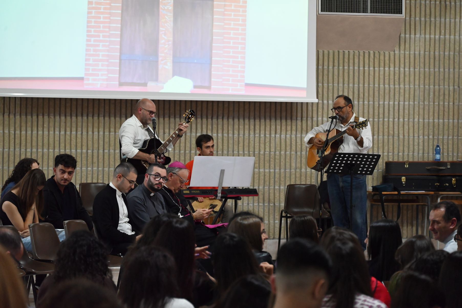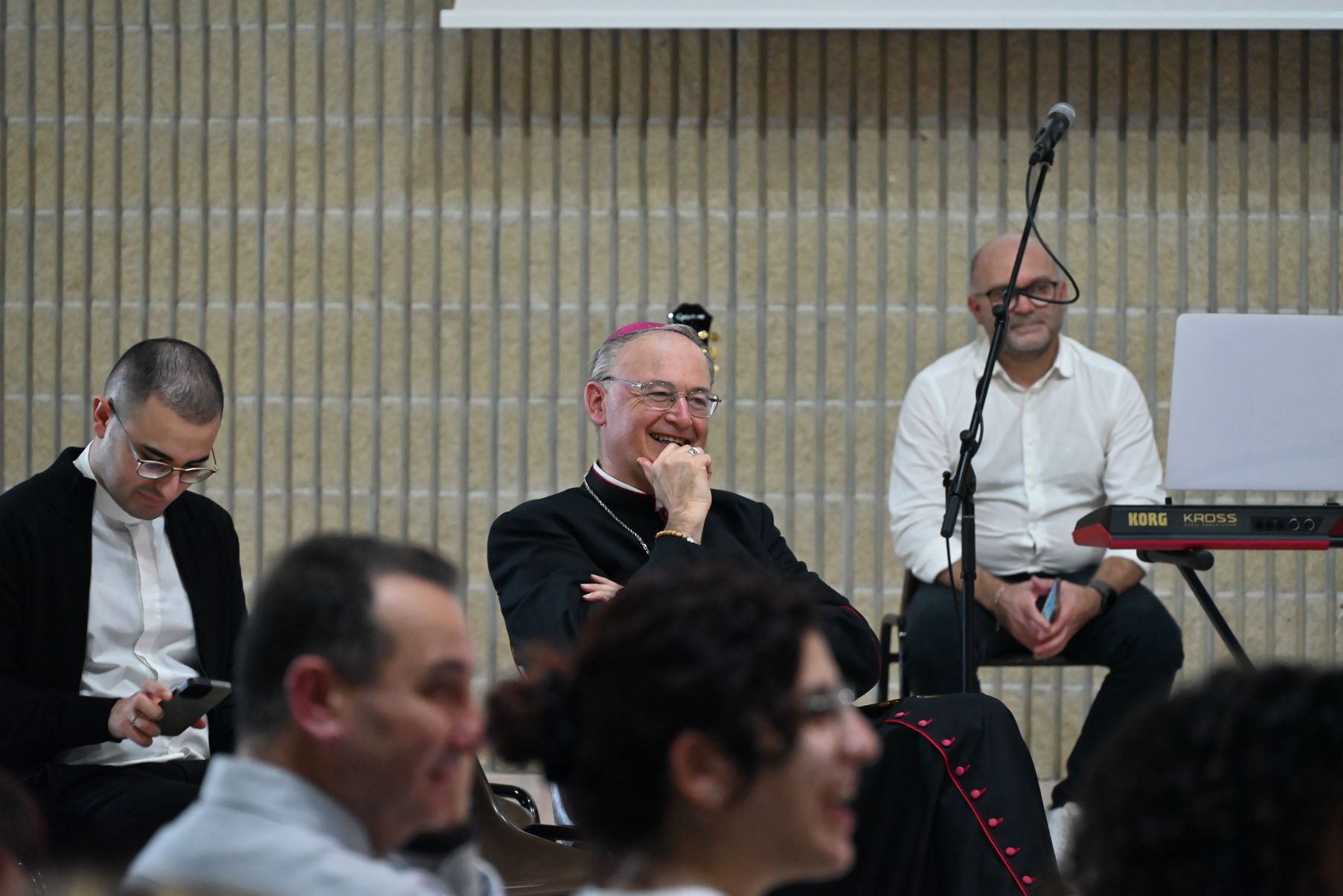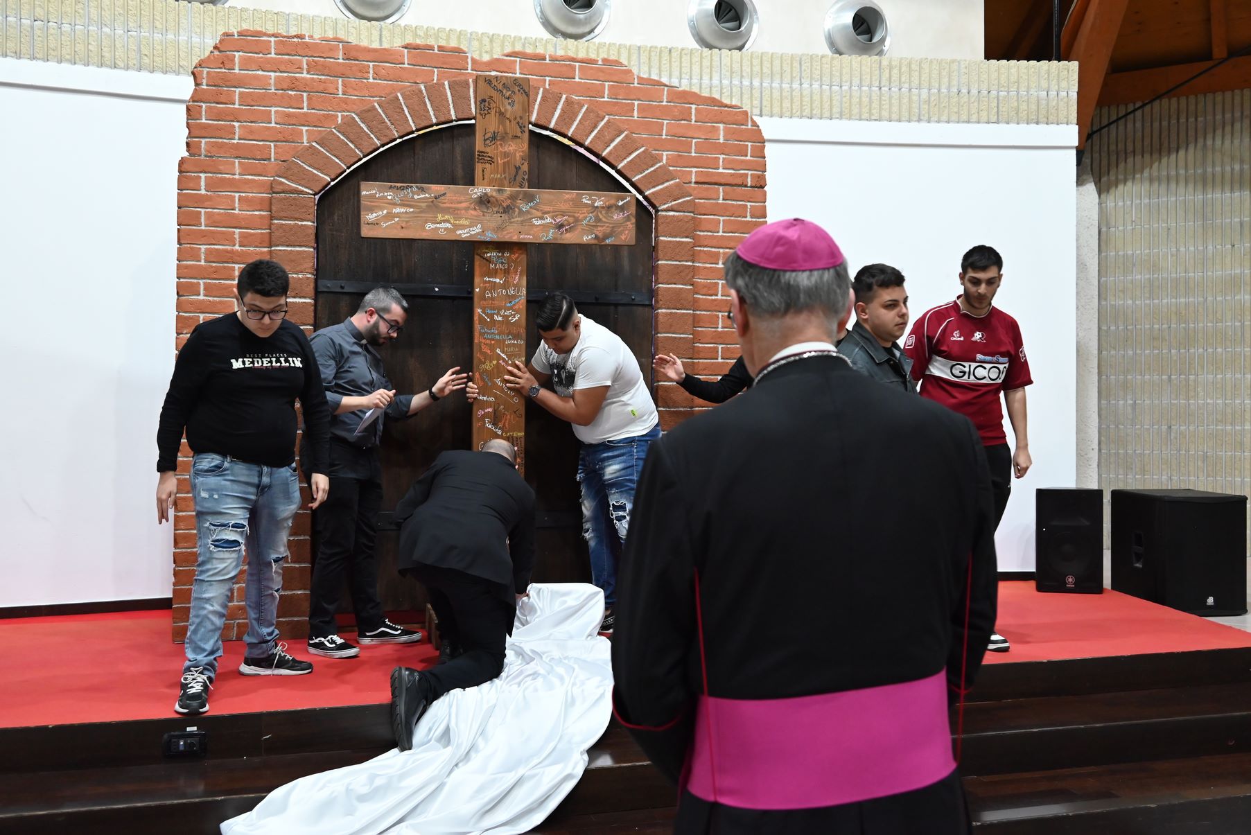 I primi arrivi sono stati accolti alle ore 17, seguiti dall’ingresso solenne del Vescovo, accompagnato da una rappresentanza di ragazzi che hanno portato la croce, posta simbolicamente al centro del palco, segno forte e visibile del cammino comune.