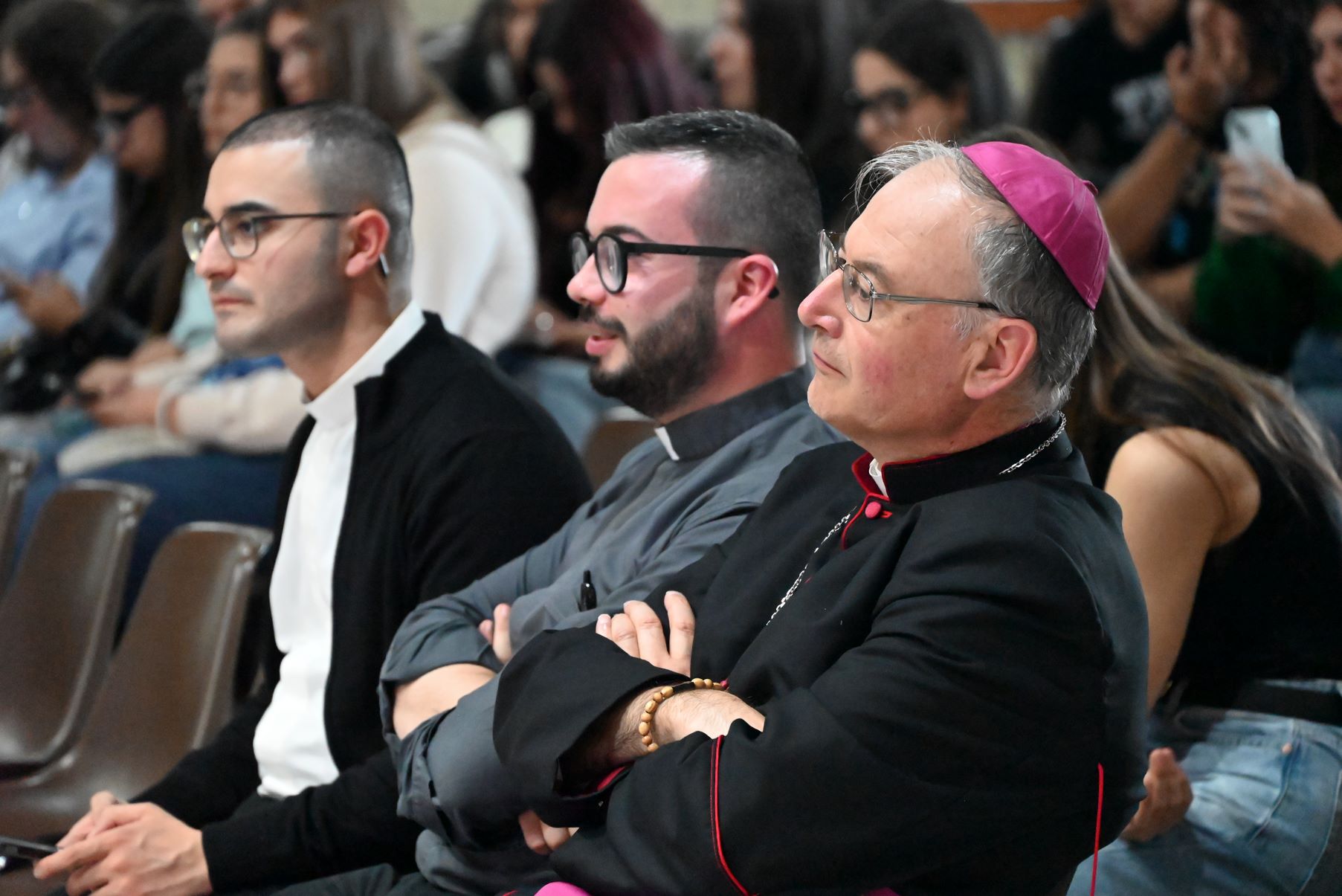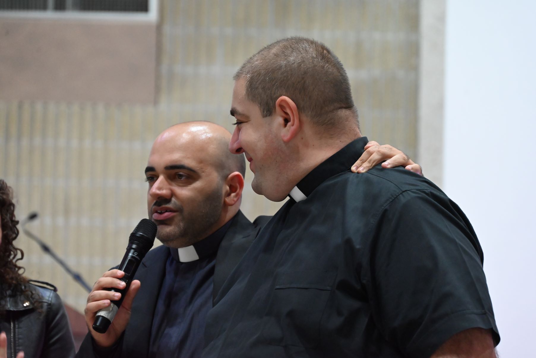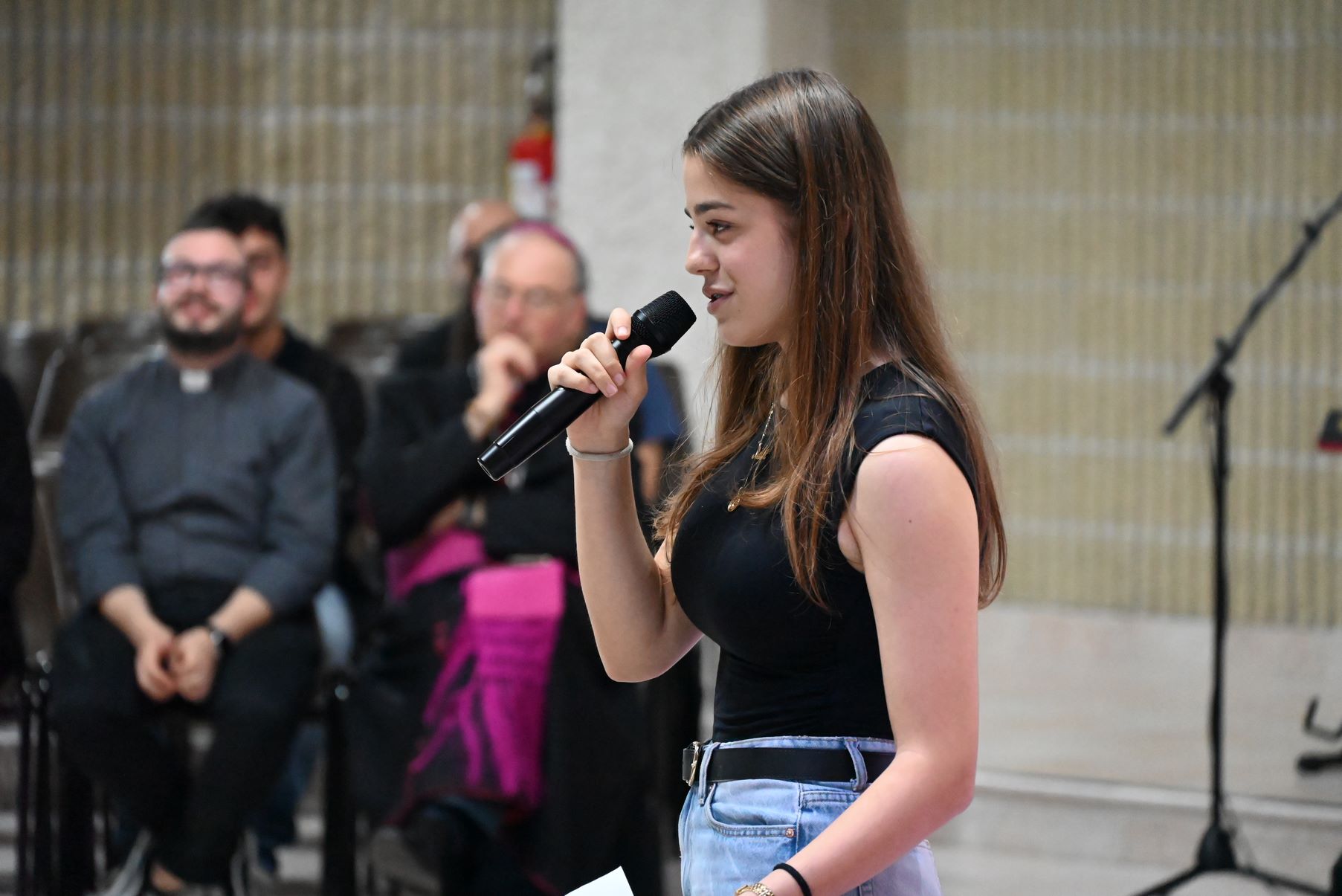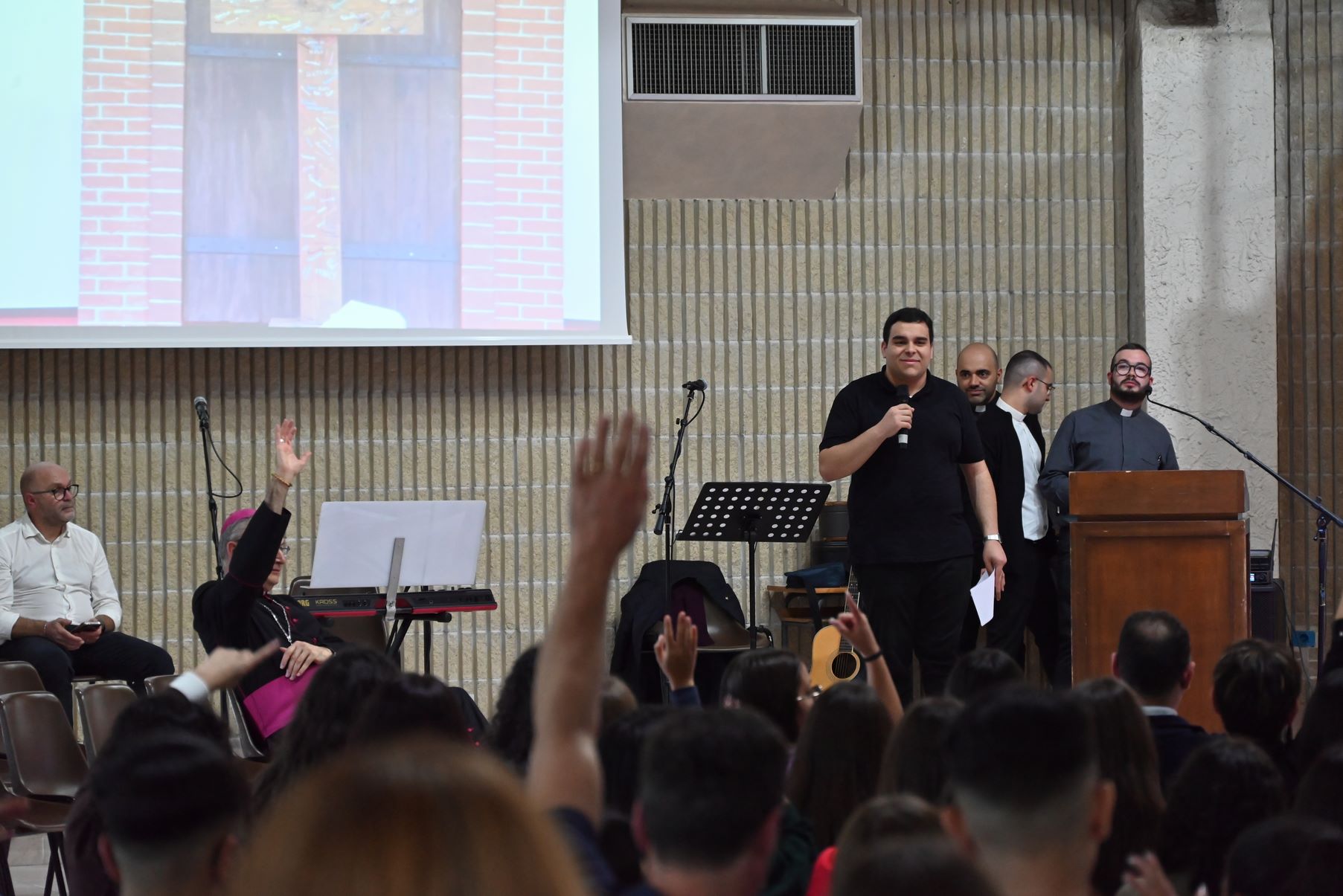 Grande emozione durante la proiezione del video-fotografico che ha raccolto le immagini inviate dalle parrocchie: volti, sorrisi e momenti vissuti insieme durante il Giubileo, che hanno fatto da cornice alle testimonianze di tre giovani partecipanti. Dopo ciascun racconto, i presenti hanno avuto un minuto di silenzio per riflettere e annotare una parola o una frase significativa, divenute poi spunto per un quiz interattivo, che ha unito riflessione e gioco.