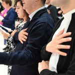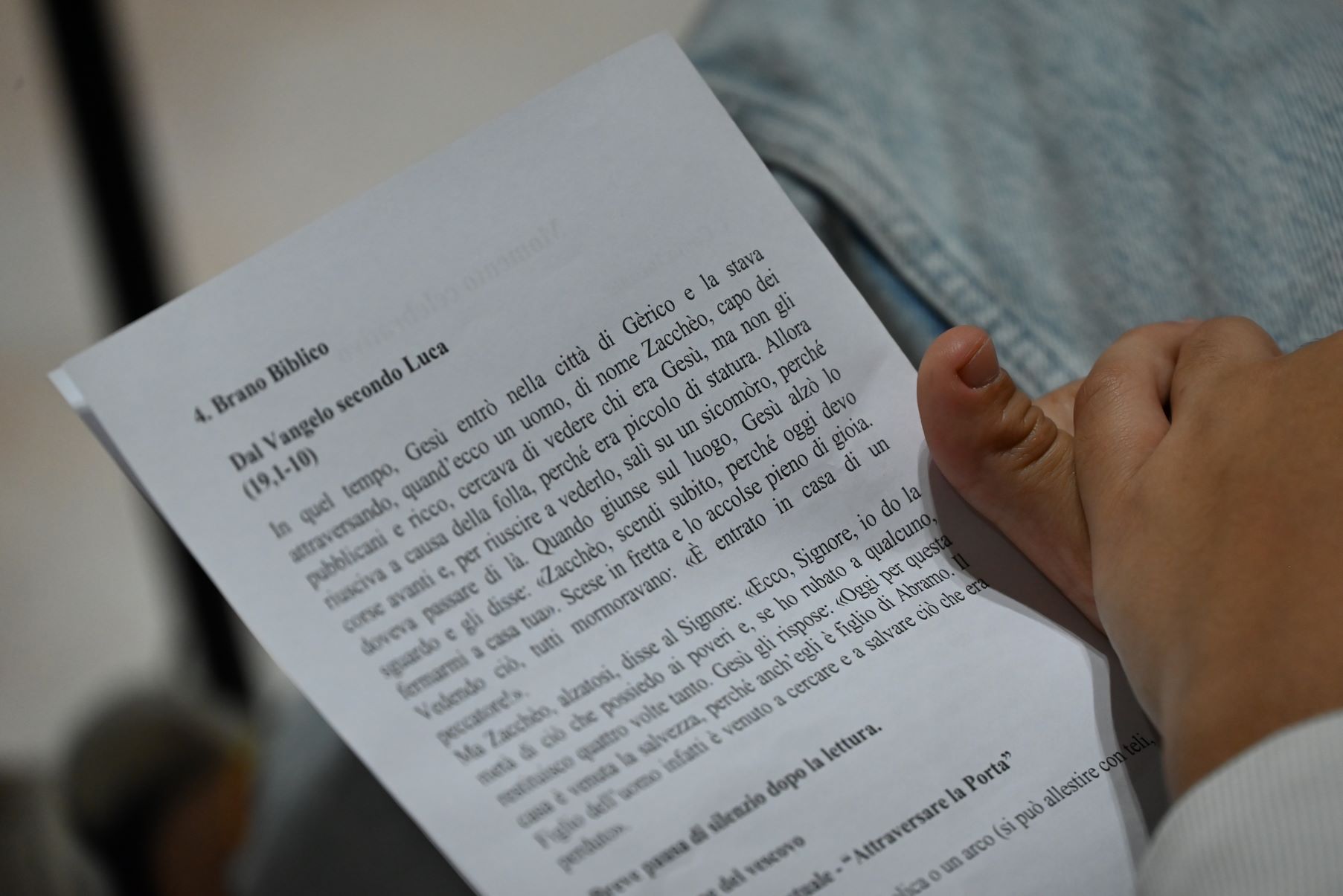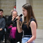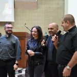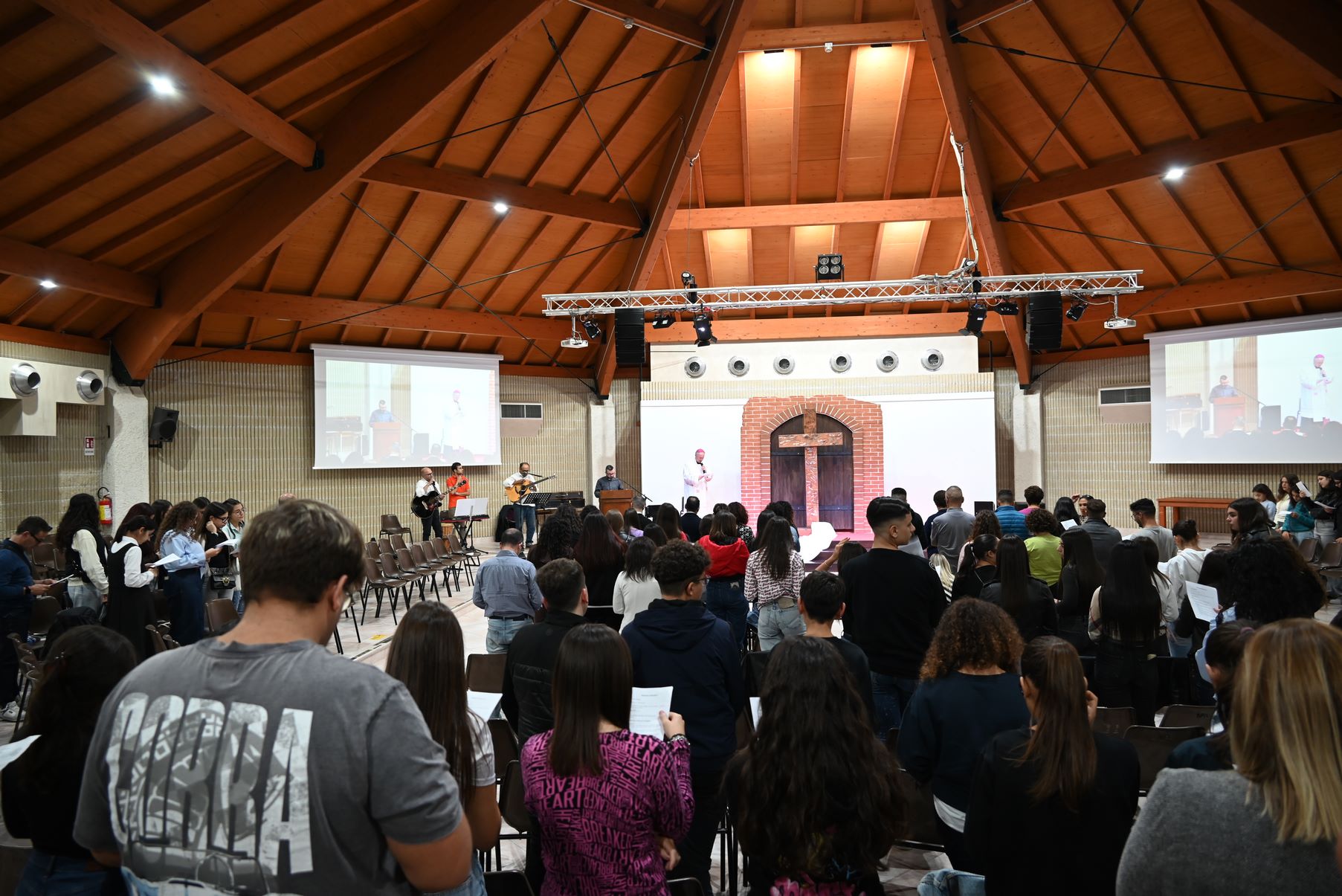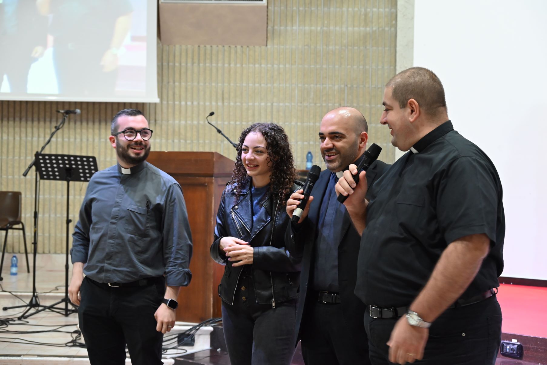 Grande emozione durante la proiezione del video-fotografico che ha raccolto le immagini inviate dalle parrocchie: volti, sorrisi e momenti vissuti insieme durante il Giubileo, che hanno fatto da cornice alle testimonianze di tre giovani partecipanti. Dopo ciascun racconto, i presenti hanno avuto un minuto di silenzio per riflettere e annotare una parola o una frase significativa, divenute poi spunto per un quiz interattivo, che ha unito riflessione e gioco.