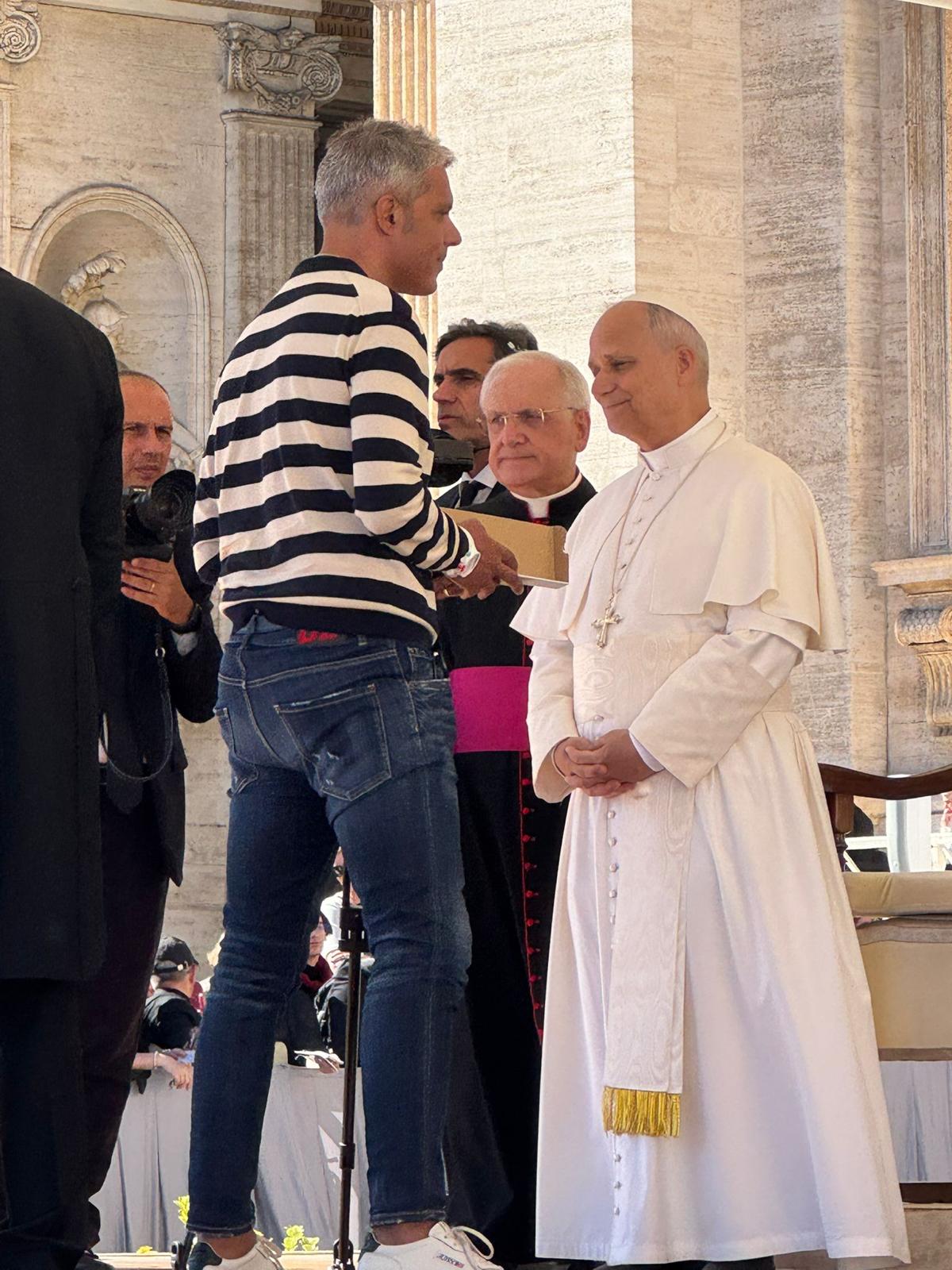 Al termine dell’udienza, il dott. Salvatore Raso, a nome di tutti i medici cattolici della diocesi, ha avuto la gioia di avvicinarsi al Santo Padre per presentargli una statua di San Giuseppe Moscati, medico santo e patrono della categoria. Il Pontefice ha benedetto personalmente la statua, simbolo di questa giornata di grazia, che sarà collocata nella sede diocesana dell’A.M.C.I., quale segno permanente di affidamento e di ispirazione per tutti i medici che operano con spirito cristiano al servizio della vita e della dignità della persona.
