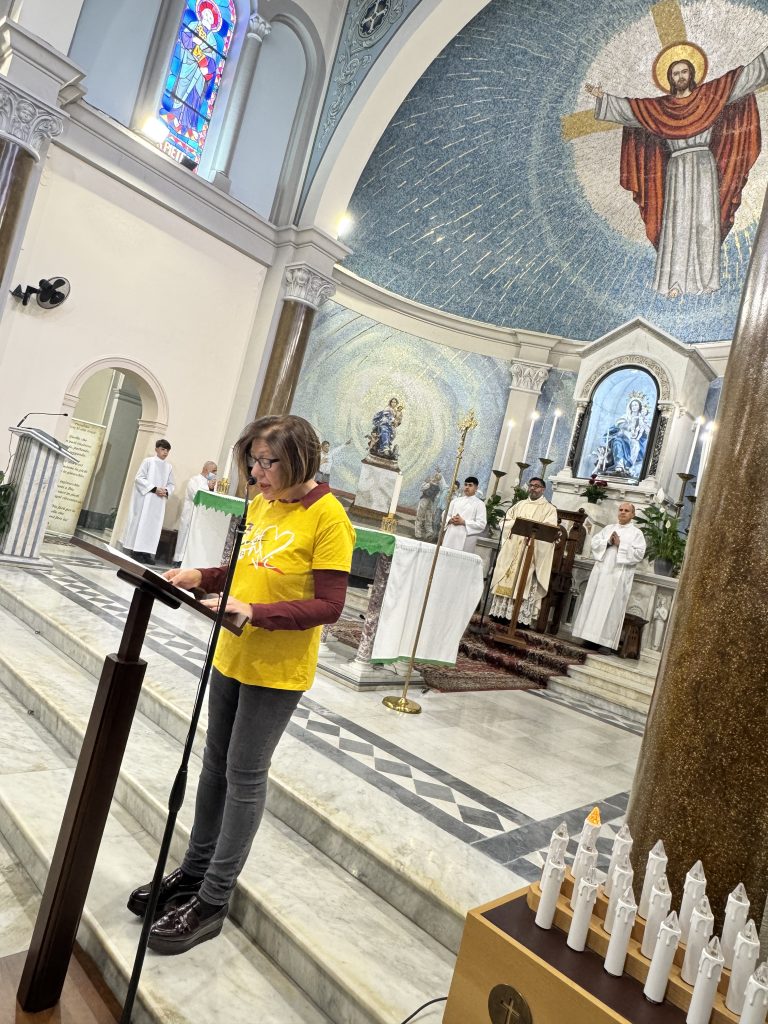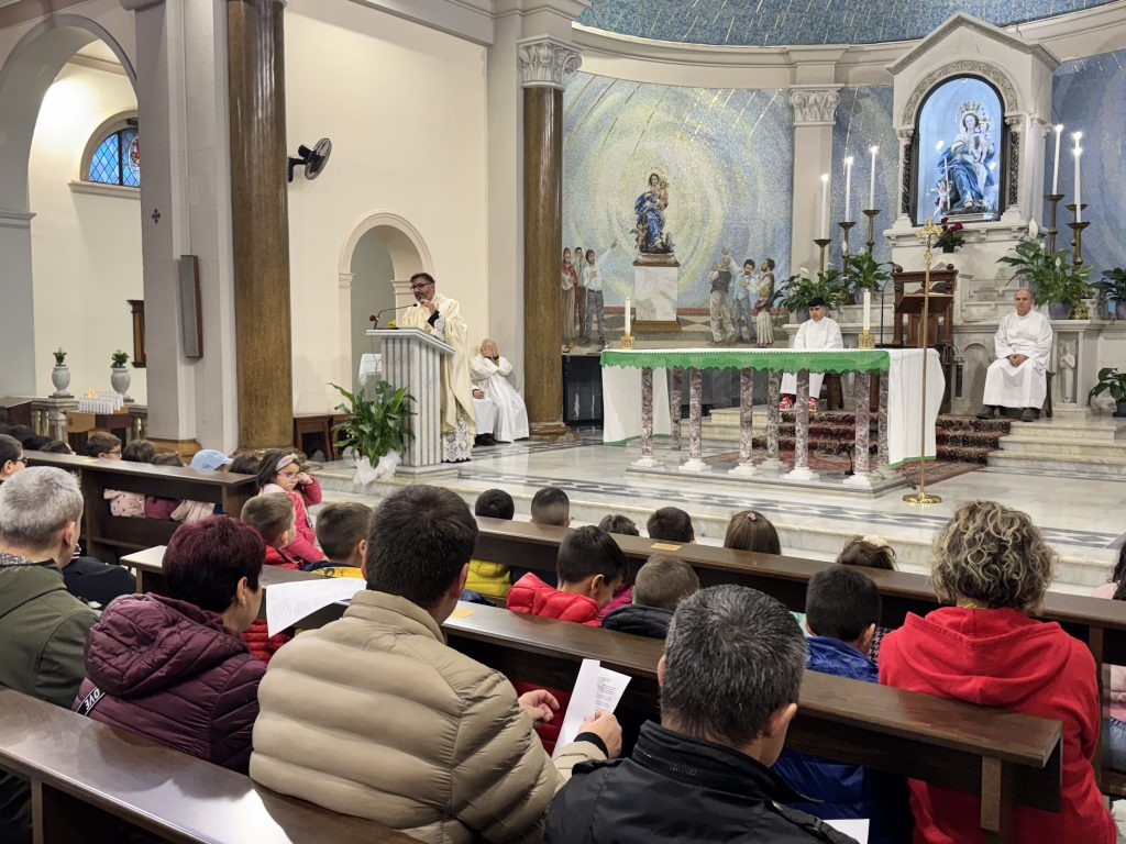 La giornata è proseguita con la Santa Messa, presieduta dal Parroco don Mino e animata dal Coro “Giovani Verso l’Alto”, formato da giovani, giovanissimi e adulti dell’associazione. All’inizio della celebrazione, la presidente parrocchiale Maria Francesca Marafioti ha espresso con semplicità e profondità il senso del cammino associativo: una Chiesa viva, che accoglie e si apre a tutti. Durante l’omelia, don Mino ha ricordato che “nella casa di Dio c’è spazio per tutti”, ma che questo spazio nasce prima di tutto da un cuore capace di accogliere, amare e incontrare chi ci sta accanto.