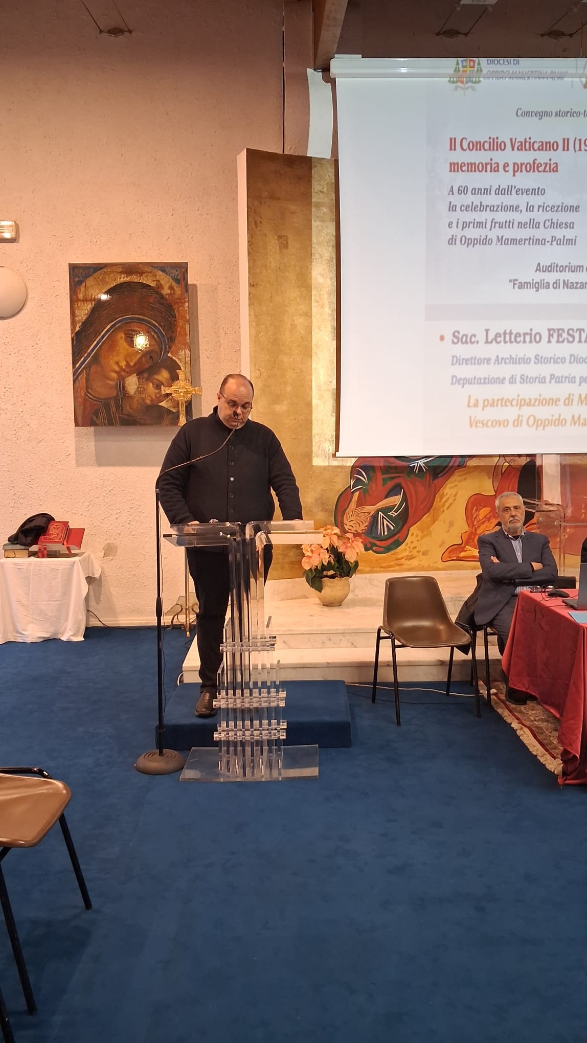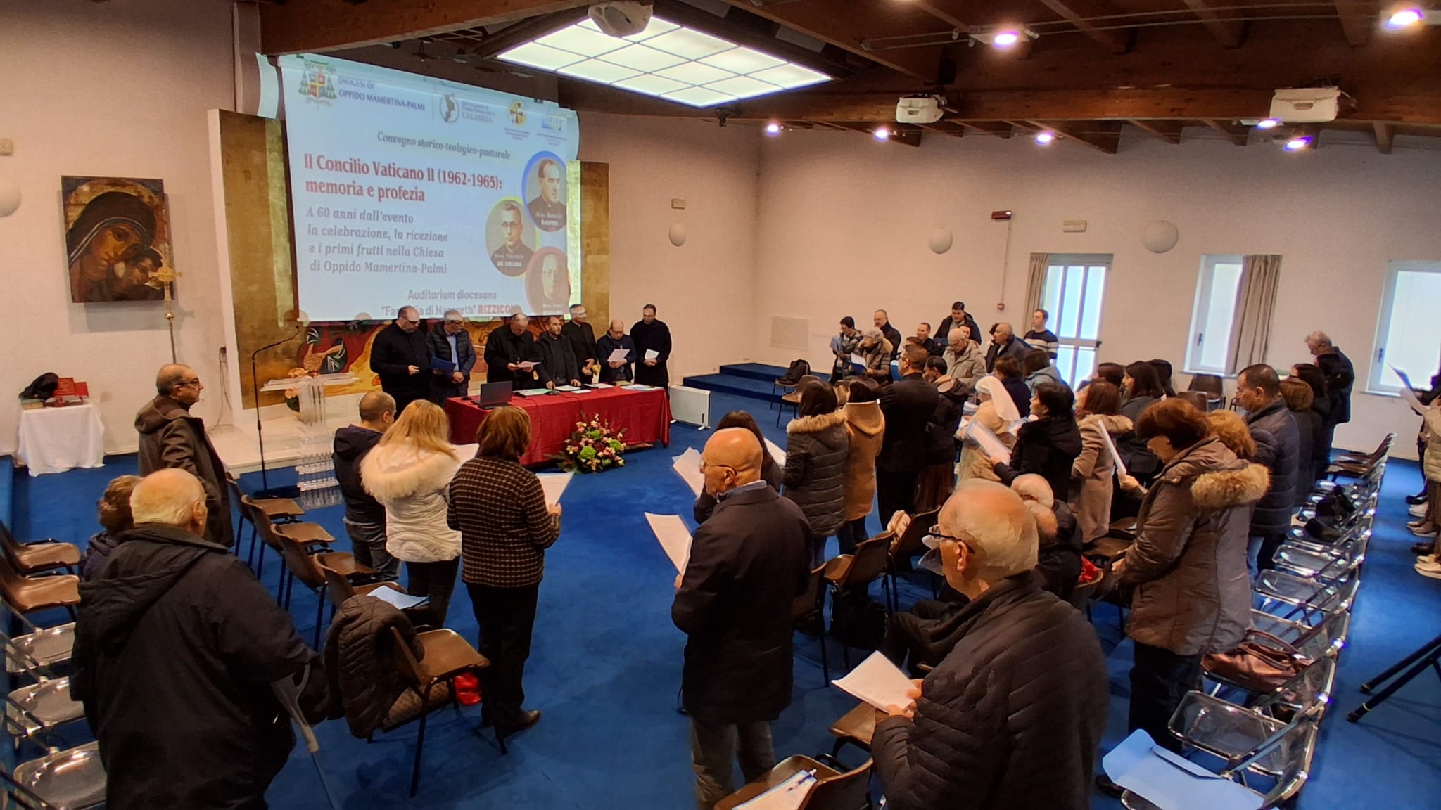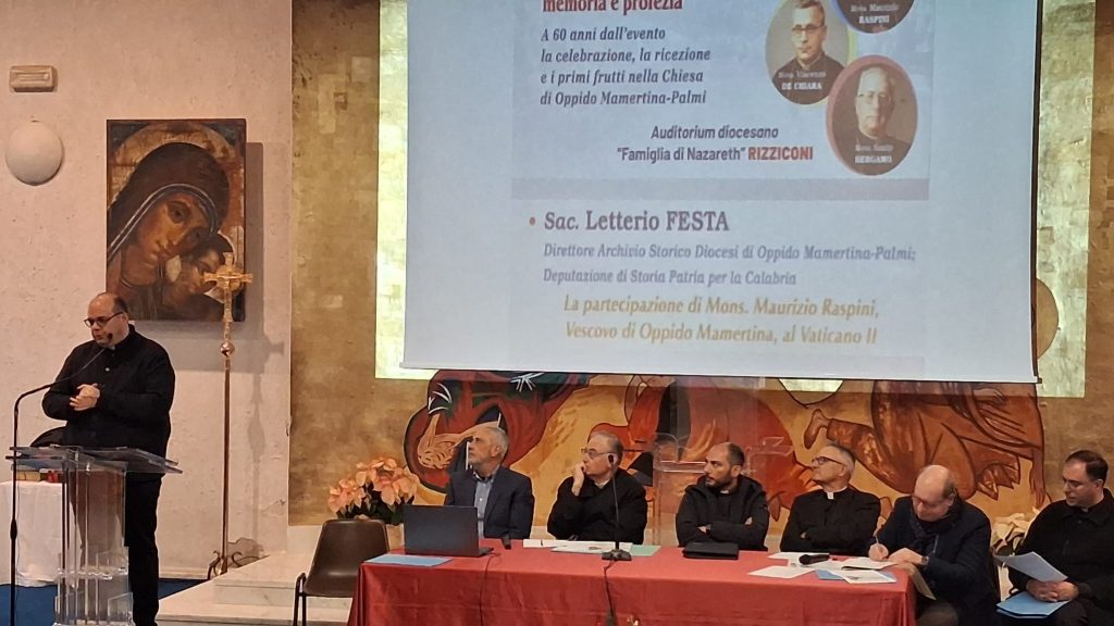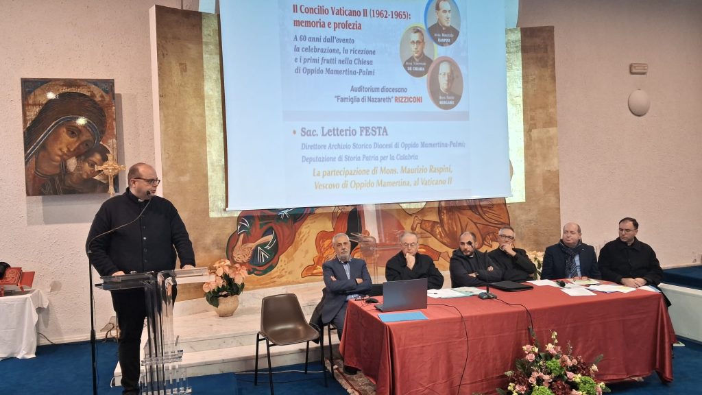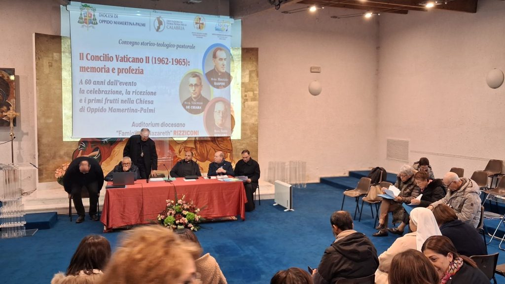 Nella mattinata del 12 dicembre 2025, sempre nell’Auditorium diocesano “Famiglia di Nazareth” di Rizziconi, si è tenuta la seconda e conclusiva sessione del Convegno storico-teologico-pastorale dedicato al Vaticano II e organizzato dalla Diocesi. In questa seconda giornata, il Convegno ha assunto il tono di una narrazione corale: non un esercizio accademico ma una rilettura colare di una Storia locale intesa come “Storia di salvezza”, intrecciata alla vita concreta di un popolo e dei suoi pastori. Il Concilio, infatti, non è “un pezzo da museo” ma un cantiere ancora aperto, un processo ancora in atto in una continuità che diventa cammino.